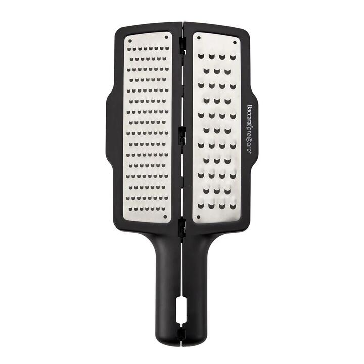 Enhance the flavour of your favourite meals with the Baccarat Prepare Multi Grater. This foldable compact design, constructed of durable stainless steel, is a must-have item for preparing delicious meals for the whole family to enjoy. Ideal for grating anything from hard cheeses to zesting citruses and garlic, the dual-sided Baccarat Prepare Multi Grater is guaranteed to help you achieve maximum flavour in all your food creations. Complete with a comfortable, firm grip handle, is designed for safe and controlled use. Introducing Baccarat Prepare, the ultimate food preparation collection designed for the Home Chef. Elevate your cooking experience with our BPA-free, stainless-steel tools that prioritise safety and efficiency. Simplify meal prep, minimise mess, and enjoy the art of cooking like never before. With Baccarat Prepare, culinary excellence is just a chop, slice, and dice away. Features Add natural flavour to any dish Excellent for grating hard cheeses, and zesting citruses or garlic Crafted from easy to clean quality stainless steel and durable plastic Foldable, compact, space saving design Dual sided grater with the choice of coarse or fine grating BPA and chemical free Complete your kitchen prep setup with the Baccarat Prepare collection What Am I Buying 1 x Grater Material Stainless Steel and Plastic