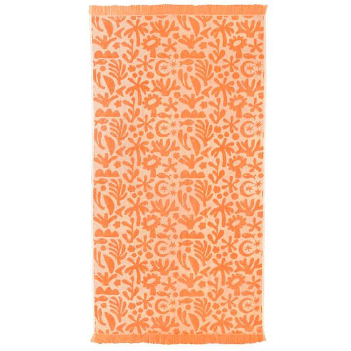 The Bambury Hilo Cotton Beach Towel Holiday is an ideal accessory for the beach or pool. It is made using a high-low pile technique, as well as a playful natural fringing along both ends. The towel is large in size, but lightweight, which makes it compact for travel and quick to dry. This design is a collection of fun holiday elements, and it features a summery colour on a white background. Features • Great for beach or pool • Quality cotton construction that is soft and absorbent • Large yet lightweight, compact and quick drying • Features a playful natural fringe along both ends • Machine Washable What Am I Buying 1 x Beach Towel Materials 100% Cotton. Front: Velour, Back: Terry