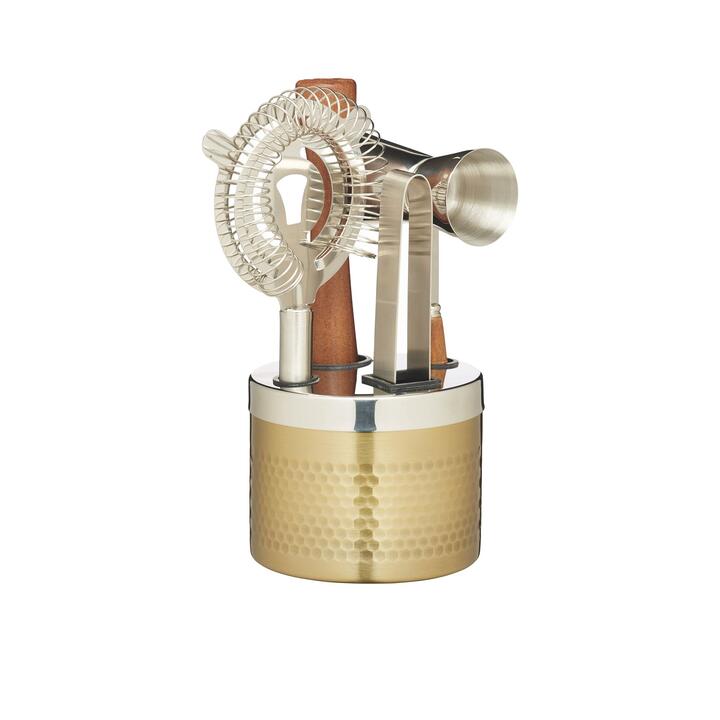 Upgrade your kitchen with the BarCraft Hammered Brass Cocktail Tool Set 5pc Gold by BarCraft. Perfect for cocktail accessories, this product combines durability, smart design, and ease of use. Ideal for home cooks and pros alike.