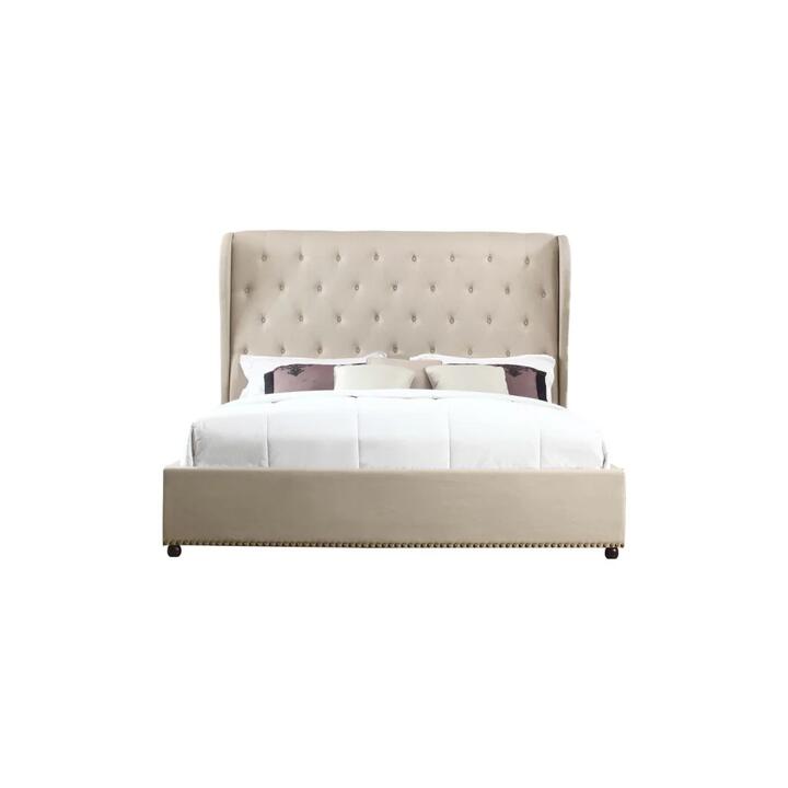 Named after France's capital-the global center for art and culture, this sophisticated bed frame is uniquely French with its design, the wings, the high-rise feature, and the studded buttons make it a very exclusive piece of furniture in your bedroom. Premium Quality Our stylish modern bed frame is furnished with the premium quality fabric and the headboard is finely decorated with deep quilting and fabric covered buttons on high padded surface. Sturdy Construction We use bentwood slats for our bed base. Bentwood slats make the bed stronger and enhance its endurance by providing flexibility. These give a little under pressure, which is beneficial if you turn during the night, or if 2 people use the bed one person could move around and with the slats taking the pressure it wouldn't disturb the second person. Metal Joint Strong metal joint provides strength & support. It firmly joins the slats with the bed frame so that there remains relatively less chance of breaking down. Beautiful Wooden Leg Comes to you in beautiful round shaped wooden legs which make the bed strong and sturdy. Its shape, colour and metal studded edge offer an aesthetic look to your bedroom. Key Features:, French Provincial Design Wing Upholstered Bed, Handcrafted Diamond-Tufted Detailing for a Stylish Look, High Tufted Headboard with Buttons, Metal Stud Embedded on Edge, Sturdy Construction with Metal Middle Support Bar, Bentwood Slat, Beautiful Wooden Leg, Smart Box Packaging, Simple Home Assembly Required, Product Specifications:, Product dimension (cm):L-228 x W-205 x H-160, Box dimension (cm):, Box 1: L-198 x W-170 x H-18 Box 2: L-215 x W-34 x H-32, Product weight: 65kg, Bed Weight Capacity: 200kg, Packaging type: Flatpack, Images are for illustration purposes only. The colours may slightly vary from actual product. Free Shipping offer is applicable to VIC, NSW, QLD, ACT & SA Metro area only, additional shipping fee is required for delivery outside this area. Note:- Actual product colours may vary due to lighting, studio photography, room conditions, different screens on various devices. – All our furniture product are flat pack (assembly required) for safe handling purposes.