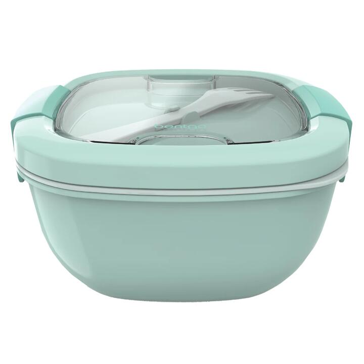 Elevate your on-the-go dining experience with the Bentgo All-In-One Salad Container. This stylish solution makes health-conscious eating a breeze, letting you transport your favourite salads, pasta, or other delights in its spacious bowl, while the clever tray above keeps toppings and snacks perfectly separate. No more worrying about leaks—the bonus, leakproof container ensures dressings or sauces stay secure. With a fresh design and four chic colours to choose from, plus the added convenience of a fork with its own cover, the Bentgo All-In-One Salad Container is your go-to for work, school, camping, or beach days. Features Effortlessly enjoy fresh salads and meals anywhere. Keep toppings and snacks separate in the clever tray above Sauce container ensures dressings and sauces stay secure Includes a handy fork with a cover for on-the-go ease Stylish design, perfect for work, school, camping, or beach outings 2 easy to use clips are easy to open and close Salad bowl capacity of 1.59L (around four cups of pasta or greens) MaterialPlasticDimensions18.3 x 17.8 x 10.5cmWhat Am I Buying1 x Salad Container
