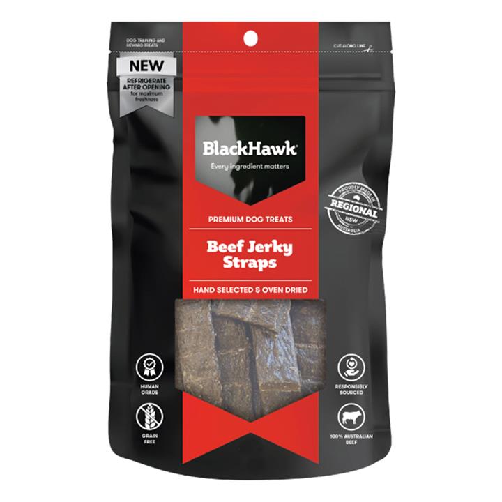 Buy Black Hawk Beef Jerky Straps Dog Treats at a low price online from VetSupply. This treat is a healthy way to reward your dog.