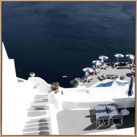 Blue Beauty Canvas Art Print – Take yourself to dreamy vacations on Greek islands with this photographic wall print of a luxury coastal resort beside the ocean. Palette is versatile with clean, bright white shades and dark blues that will have you yearning for travels to Europe. Get swept away in the Wanderer Collection, a series of travel photography with an evocative blend of cityscape, coastal, and vintage themes. Each art print captures the essence of wanderlust, transporting you to serene shores, bustling cities, and nostalgic moments. With a versatile colour palette that ranges from muted neutrals to vibrant hues, these photographic wall prints are perfect for any decor. Whether you seek the charm of vintage photography or the allure of coastal scenes, our collection offers something for every art lover. Elevate your space with these stunning wall art pieces and let your space tell a story of exploration and timeless beauty. Disclaimer: Colours of Urban Road products may vary due to device display differences, monitor settings, inherent product variations, lighting conditions, and screen calibration. While we strive for accuracy, slight variations may occur. For any concerns, contact our customer support. Your satisfaction is our priority. STRETCHED CANVAS Urban Road's stretched canvas fine art prints are professionally printed on polycotton artist canvas, using archival inks and then stretched and gallery wrapped. This means the image is stretched around a 38mm frame to create a seamless, museum-quality finish. All stretched and box framed art prints arrive ready to hang. SHADOW BOX FRAMES We also offer the option to add a shadow box frame to your Urban Road canvas art print. A little different from a traditional framed print, the canvas sits within the box frame with a 5mm gap, creating a sophisticated shadow effect between the frame and the canvas. Our solid timber box frame mouldings are 10mm wide, and 55mm deep, and add approximately 40mm to the length and height of the listed canvas size. ROLLED CANVAS ART At Urban Road, we also offer you the option to purchase your canvas art print unframed to allow you to have it framed your own way. As with our stretched and box framed canvas products, our rolled canvas prints are professionally printed on durable, museum-quality, matte coated polycotton canvas and made to order. Our rolled canvas products are printed to the listed stretched size, and come with an additional 45mm mirrored edge plus another 60mm white border to allow for gallery wrapping.