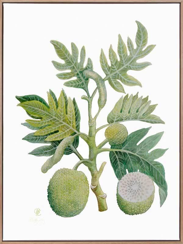 Breadfruit Canvas Art Print – An intricate hand painted still life of breadfruit, one or two still attached to their growing branches, another freshly sliced in half. This piece has an intimate feel to it, with detailed linework and colouring using varying green and yellow tones, all against a stark white background to reveal each and every detail. Bethany Linz brings her timeless touch to Urban Road, with incredibly intricate, detailed pieces inspired by exotic wildlife and plant life. Bethany is known for her exquisitely hand painted art that's transformed into various textiles, creating an overall vintage look and feel. Many of the pieces in this collection are inspired by Indian summers, conveying warm breezes, buzzing insects, and gorgeous Indian animal studies featuring realistic details and modest compositions. A widespread colour palette focuses on understated tones, from soft pinks, yellows and blues, to rich emerald greens, and plenty of neutral clay shades, which all incorporate beautifully with many interior design styles. Disclaimer: Colours of Urban Road products may vary due to device display differences, monitor settings, inherent product variations, lighting conditions, and screen calibration. While we strive for accuracy, slight variations may occur. For any concerns, contact our customer support. Your satisfaction is our priority. STRETCHED CANVAS Urban Road's stretched canvas fine art prints are professionally printed on polycotton artist canvas, using archival inks and then stretched and gallery wrapped. This means the image is stretched around a 38mm frame to create a seamless, museum-quality finish. All stretched and box framed art prints arrive ready to hang. SHADOW BOX FRAMES We also offer the option to add a shadow box frame to your Urban Road canvas art print. A little different from a traditional framed print, the canvas sits within the box frame with a 5mm gap, creating a sophisticated shadow effect between the frame and the canvas. Our solid timber box frame mouldings are 10mm wide, and 55mm deep, and add approximately 40mm to the length and height of the listed canvas size. ROLLED CANVAS ART At Urban Road, we also offer you the option to purchase your canvas art print unframed to allow you to have it framed your own way. As with our stretched and box framed canvas products, our rolled canvas prints are professionally printed on durable, museum-quality, matte coated polycotton canvas and made to order. Our rolled canvas products are printed to the listed stretched size, and come with an additional 45mm mirrored edge plus another 60mm white border to allow for gallery wrapping.