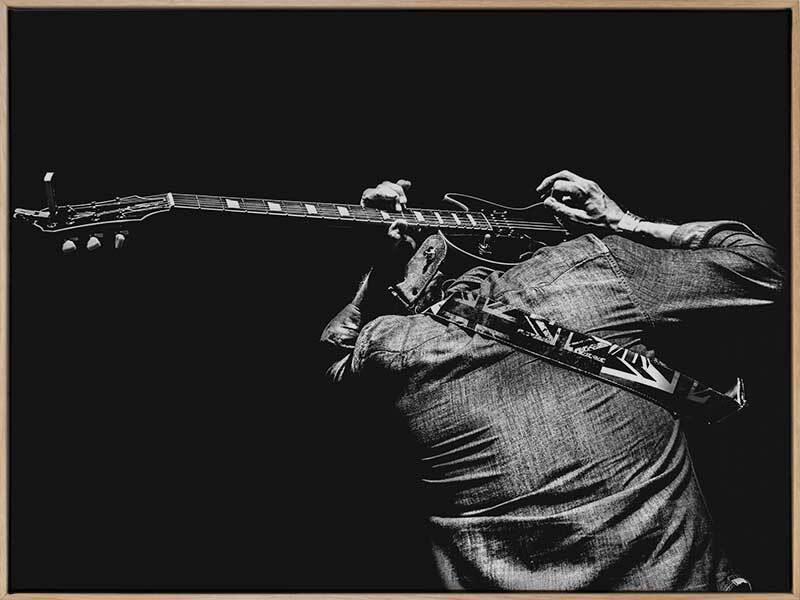 British Sound Canvas Art Print: A black and white photographic image of a musician playing the guitar behind his back. 2018 AUTUMN/WINTER COLLECTION: CONTINUUM Disclaimer: Colours of Urban Road products may vary due to device display differences, monitor settings, inherent product variations, lighting conditions, and screen calibration. While we strive for accuracy, slight variations may occur. For any concerns, contact our customer support. Your satisfaction is our priority. STRETCHED CANVAS Urban Road's stretched canvas fine art prints are professionally printed on polycotton artist canvas, using archival inks and then stretched and gallery wrapped. This means the image is stretched around a 38mm frame to create a seamless, museum-quality finish. All stretched and box framed art prints arrive ready to hang. SHADOW BOX FRAMES We also offer the option to add a shadow box frame to your Urban Road canvas art print. A little different from a traditional framed print, the canvas sits within the box frame with a 5mm gap, creating a sophisticated shadow effect between the frame and the canvas. Our solid timber box frame mouldings are 10mm wide, and 55mm deep, and add approximately 40mm to the length and height of the listed canvas size. ROLLED CANVAS ART At Urban Road, we also offer you the option to purchase your canvas art print unframed to allow you to have it framed your own way. As with our stretched and box framed canvas products, our rolled canvas prints are professionally printed on durable, museum-quality, matte coated polycotton canvas and made to order. Our rolled canvas products are printed to the listed stretched size, and come with an additional 45mm mirrored edge plus another 60mm white border to allow for gallery wrapping.