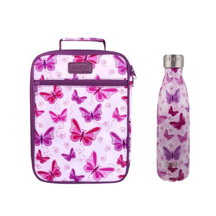 Matching Butterflies Sachi Insulated Lunch Bag and Oasis Stainless Steel Insulated Drink Bottle 500mls.