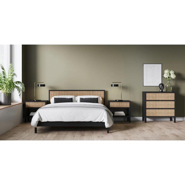 The Caledonia Rattan Queen Size Bed Frame is pure simplistic style. It is the perfect piece for a modern, elegant bedroom. The rudimentary form complements the tactile rattan finish. Tactile rattan finish, Wooden frame, Solid mango wood legs, Slat base provides a support and comfortable, Raised base allows air to circulate freely, Simply wipe down the marks with damp cloth, The Caledonia Rattan Queen Size Bed Frame is the perfect way to get gorgeous for your bed. A fixed slat base provides a supportive base for a comfortable night's sleep. And the raised base allows air to circulate freely, so it is perfect for subtropical climates. To keep it in the best condition, wipe spills away immediately with a damp cloth. Dimension, 211.5 x 163 x 90cm. Note:- Actual product colours may vary due to lighting, studio photography, room conditions, different screens on various devices. – All our furniture product are flat pack (assembly required) for safe handling purposes.