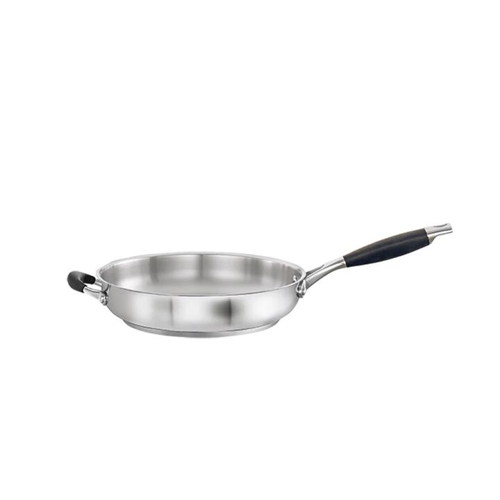 The Baccarat Capri+ Frypan 30cm is a must have for daily use in the kitchen. Crafted from premium materials that provide rapid, even heating and thwarts hot spots, the frypan is simple to take care of and performs beautifully. The 5mm aluminium core is encapsulated by an 18/10 stainless steel protective layer and 18/10 stainless steel mirror shined body that will not pit or corrode. The core spreads from the middle to the edges of the frypan, helping to stop food from burning in the corners. The ergonomic stainless-steel handle has silicone moulding for a comfortable grip and safe use. It is also oven safe to 180° and dishwasher friendly for added convenience. The Baccarat Capri+ Frypan 30cm is the ultimate frypan and is suitable for all cooktops including induction. Features • Body is made from quality 18/10 stainless steel • Mirror finish outer with easy-clean satin interior • Quick and even heat transfer without hot spots • Ergonomically designed silicone riveted handle ensures frying pan is oven safe (180C) and dishwasher safe • Suitable for all cooktops including induction • Backed by the Baccarat LIFETIME GUARANTEE Materials • Stainless Steel Dimensions • 30cm