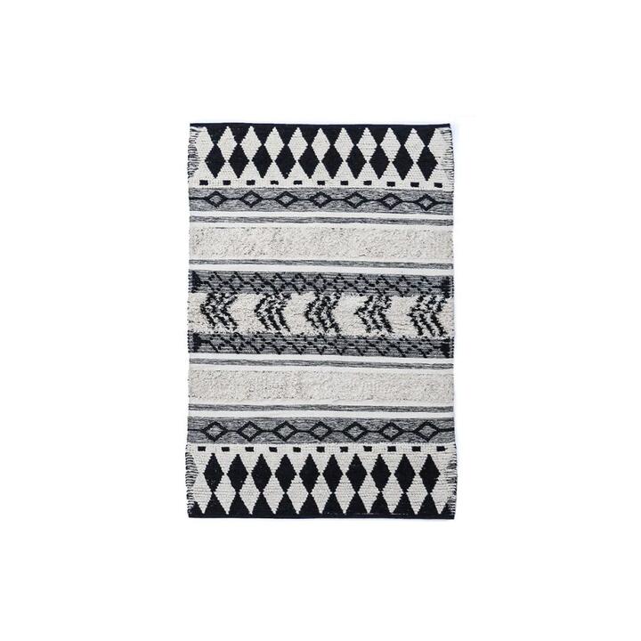 Inspired by traditional Moroccan motifs, this beautiful black and white rug is hand woven from pure cotton, and will add rustic charm to any room of the home. Monochrome patterned rug, Middle Eastern-inspired design, Made from 100% cotton, Handwoven design, Dimensions: 120 × 180cm, Experience the soft luxury of the Casablanca Rug that will tie any room's decor together with its classic, geometric patterned design. Rich, natural textiles, Using a traditional, time honoured technique, this handwoven rug is crafted from pure cotton that is soft to the touch, naturally durable and easy to clean and maintain. Monochrome contrast, Contrasting deep blacks, neutral greys and natural whites in an intricate geometric pattern this gorgeous rug will add a touch of monochromatic magic to your interior design. Dimension: W 120 x L 180 cm. Note:- Actual product colours may vary due to lighting, studio photography, room conditions, different screens on various devices.