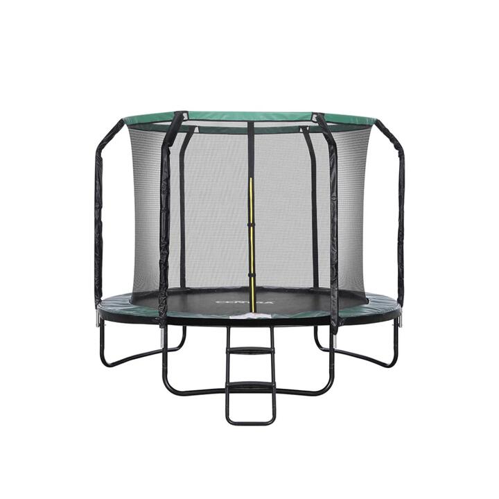 DESCRIPTION Start by doing jumping jacks on you round trampoline. Move on to tuck jumps and squat jumps . Do a seat drop. Now trying bouncing on one leg. After some practice you might be able to do a flip. Kids just want to have fun on their kids trampoline. Supervise your kids first. Make sure they understand how to safely jump on their kids trampoline. After that, you can let them outside to play by themselves. The challenge of fitness is finding the time or the place. The place is your trampoline with sides . The time is any time you are at home. Anyone in your family can bounce and jump on your new trampoline. Climb the trampoline ladder inside. Bounce. Bounce higher. Let the trampoline springs and trampoline mat fling you higher . Or you can start jogging on your trampoline. Help your kids do some advanced tricks on their large trampoline. Throw them a ball. Soon they will be able to catch it. Now the challenge is to through back to you. They can try throwing while doing a somersault. Key features, No sharp corners, Strong and durable, Thick padding, Densely woven nets, UV-resistant, Bouncy, Smooth touch, Step ladder, Foam-wrapped steel poles, Basketball thrills, , Note 1 : We recommend wearing gloves when assembling your trampoline. Note 2 : Basketball, hoop and pump are sold separately. Safety note: Suitable for children aged over 6 years. SPECIFICATIONS Brand: Centra, Trampoline, Frame material: Galvanised steel, Ladder: Galvanised steel, Colour matching cover: Top PVC + fibreglass rod, Net: PE (Polyethylene), Mat: PE and PVC (Polyethylene and polymerizing vinyl chloride), Padding: EPE (Expanded polyethylene), Padding thickness: 12mm, Pole size: 25mm diameter. 1.1mm wall thickness. Colour: Black, 8FT, Weight capacity: 100kg, Numbers of poles: 12, Spring quantity: 48, Spring length: 140mm, Net height: 150cm, Mat to ground distance: 50cm, Dimensions: 2.43m x 2m (Dia x H), 10FT, Weight capacity: 150kg, Numbers of poles: 16, Spring quantity: 64, Spring length: 140mm, Net height: 183cm, Mat to ground distance: 76cm, Dimensions: 3.04m x 2.59m (Dia x H), 12FT, Weight capacity: 150kg, Numbers of poles: 16, Spring quantity: 72, Spring length: 140mm, Net height: 183.cm, Mat to ground distance: 80cm, Dimensions: 3.65m x 2.63m (Dia x H), Trampoline Basketball Set, Material: PVC, Dimension:, Basketball board:56cm x 35.5cm (L x W ), Basketball board thickness:1.8cm, Ball diameter:15cm, Pump length:28cm, Colour: Orange PACKAGE CONTENT, 1 x Centra Trampoline, 1 x Centra Ladder, 1 x Centra Trampoline Basketball Set(Optional), 1 x Instruction Manual. Note:- Actual product colours may vary due to lighting, studio photography, room conditions, different screens on various devices.