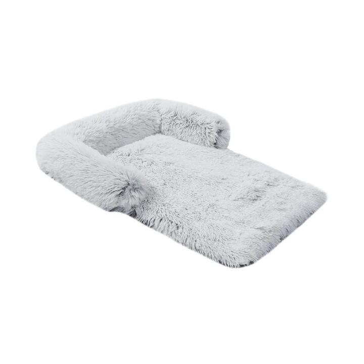 Charlie's Shaggy Faux Fur Bolster Sofa Protector Calming Dog Bed is a bed that not only protects your furniture, but also creates a calming effect on your pet, allowing you to both relax! This gorgeous shaggy vegan fur calming bed features an extended blanket panel that protects your couch from the claws of murder mittens or drool of over-excited doggos, and at the same time adds a touch of luxury to your couch. The super fluffy faux fur surface has a proven calming effect on all pets, and the bolstered back gives your pet a sense of being cuddled and protected while also giving them back and neck support so that they can rest easy. Charlie's Shaggy Faux Fur Bolster Sofa Protector Calming Dog Bed has an anti-slip base which makes it stable wherever you place it, whether its on the sofa, bed, floor or even in the car for road trips. The bed is made from lightweight materials so it is easy to take with you, making it perfect to take along for anxious travellers. (Charlies note – this bed comes vacuum packed so that you save on shipping! Just open them up, give them a bit of fluff and after 24 hours theyll become their fluffiest self) Charlie's Shaggy Faux Fur Bolster Sofa Protector Calming Dog Bed is available in Arctic White and Charcoal and comes in 2 sizes; Small and LargeFeatures Furniture protector Super soft and super comfy faux fur Provides head and neck support Removable plush cover with waterproof lining Anti-slip waterproof fabric bottom Comes in Artic White and Charcoal Available in Small and Large Dimensions Small: 80 x 70 x 10cm Large: 105 x 85 x 12cm