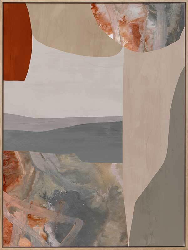 Chateau I Canvas Art Print: A sophisticated abstract artwork that overlays burnt orange, grey and cream shapes and textures. Pairs with Chateau II. 2020 AUTUMN/WINTER COLLECTION: REVERIE Disclaimer: Colours of Urban Road products may vary due to device display differences, monitor settings, inherent product variations, lighting conditions, and screen calibration. While we strive for accuracy, slight variations may occur. For any concerns, contact our customer support. Your satisfaction is our priority. STRETCHED CANVAS Urban Road's stretched canvas fine art prints are professionally printed on polycotton artist canvas, using archival inks and then stretched and gallery wrapped. This means the image is stretched around a 38mm frame to create a seamless, museum-quality finish. All stretched and box framed art prints arrive ready to hang. SHADOW BOX FRAMES We also offer the option to add a shadow box frame to your Urban Road canvas art print. A little different from a traditional framed print, the canvas sits within the box frame with a 5mm gap, creating a sophisticated shadow effect between the frame and the canvas. Our solid timber box frame mouldings are 10mm wide, and 55mm deep, and add approximately 40mm to the length and height of the listed canvas size. ROLLED CANVAS ART At Urban Road, we also offer you the option to purchase your canvas art print unframed to allow you to have it framed your own way. As with our stretched and box framed canvas products, our rolled canvas prints are professionally printed on durable, museum-quality, matte coated polycotton canvas and made to order. Our rolled canvas products are printed to the listed stretched size, and come with an additional 45mm mirrored edge plus another 60mm white border to allow for gallery wrapping.