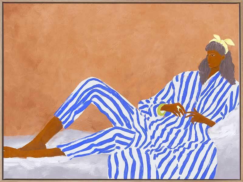 Chlo Canvas Art Print – Embracing the essence of contemporary European art styles, this captivating artwork unveils a scene where Chlo radiates effortless fashion while lounging on the cement walls of the Greek hills, eagerly awaiting a sunset dinner on the beaches of Mykonos. With its stunning allure, this piece invigorates any space, breathing an effortless life into its surroundings. The complementary palette of warm browns and vibrant oranges against a backdrop of bright blues creates a versatile and modern artwork that transports you to the heart of Europe, enticing you to embrace the sensation of being immersed in its vibrant culture. The Nature's Palette Collection exudes the essence of European-inspired art with the tranquil allure of Australian native flora, bringing you a spread of abstract and realistic floral paintings, landscapes, and more. Delicate brushstrokes dance across each piece, capturing the whimsical feel of pink-themed floral still life paintings, Australian botanical wonderlands, and contemporary European art. These art prints will transform your space into a sanctuary of calm and serenity with an overall warm and colourful palette, where neutral tones harmonise with bold hues. From painterly to watercolour paintings, there's a piece for every home decor style. Disclaimer: Colours of Urban Road products may vary due to device display differences, monitor settings, inherent product variations, lighting conditions, and screen calibration. While we strive for accuracy, slight variations may occur. For any concerns, contact our customer support. Your satisfaction is our priority. STRETCHED CANVAS Urban Road's stretched canvas fine art prints are professionally printed on polycotton artist canvas, using archival inks and then stretched and gallery wrapped. This means the image is stretched around a 38mm frame to create a seamless, museum-quality finish. All stretched and box framed art prints arrive ready to hang. SHADOW BOX FRAMES We also offer the option to add a shadow box frame to your Urban Road canvas art print. A little different from a traditional framed print, the canvas sits within the box frame with a 5mm gap, creating a sophisticated shadow effect between the frame and the canvas. Our solid timber box frame mouldings are 10mm wide, and 55mm deep, and add approximately 40mm to the length and height of the listed canvas size. ROLLED CANVAS ART At Urban Road, we also offer you the option to purchase your canvas art print unframed to allow you to have it framed your own way. As with our stretched and box framed canvas products, our rolled canvas prints are professionally printed on durable, museum-quality, matte coated polycotton canvas and made to order. Our rolled canvas products are printed to the listed stretched size, and come with an additional 45mm mirrored edge plus another 60mm white border to allow for gallery wrapping.