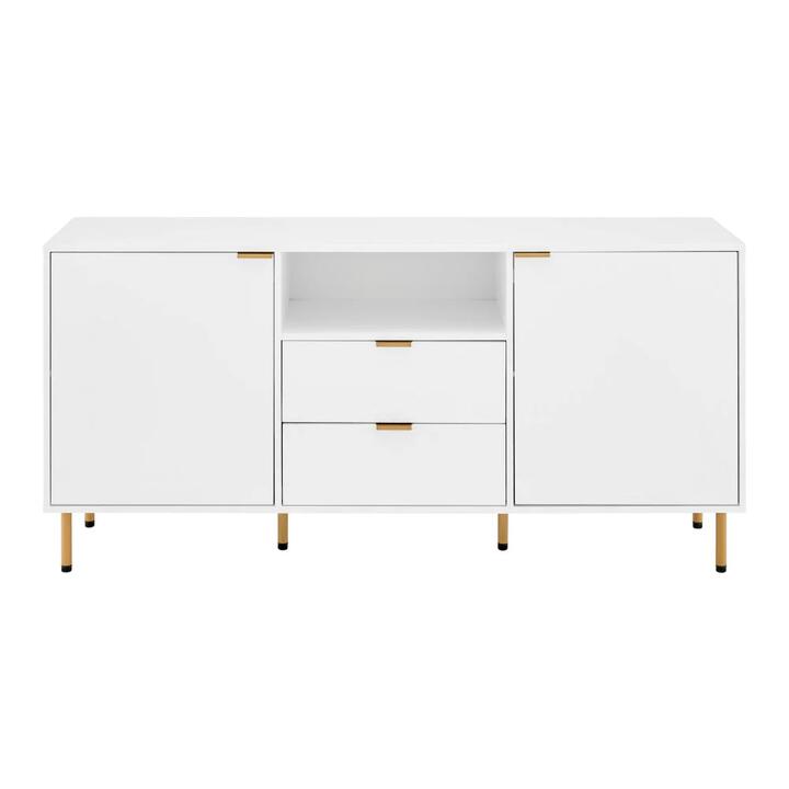 Pack away household clutter, towels, linen and more thanks to the huge storage space of this versatile sideboard that's perfect for any room in the home. Versatile sideboard, 2 Spacious sliding drawers, 2 Roomy cupboards with internal shelf, Large tabletop display, Stunning matte black finish with geometric inlay pattern, Give your photographs, plants and other decorations a stunning home thanks to the large tabletop display of the Christian Sideboard (White) . Versatile storage, With two spacious sliding drawers for storing away clutter, two roomy cupboards with shelves for towels, linen and more, and a large tabletop display to show off plants, photos and other decorations, this modern sideboard is a versatile storage solution for any room in your home. Elegant design, This modern sideboard features a stunning matte black finish and elegant geometric inlay pattern, adding understated sophistication to your home decor. Dimension: D 160 x W 39 x H 76cm. Note:- Actual product colours may vary due to lighting, studio photography, room conditions, different screens on various devices. – All our furniture product are flat pack (assembly required) for safe handling purposes.