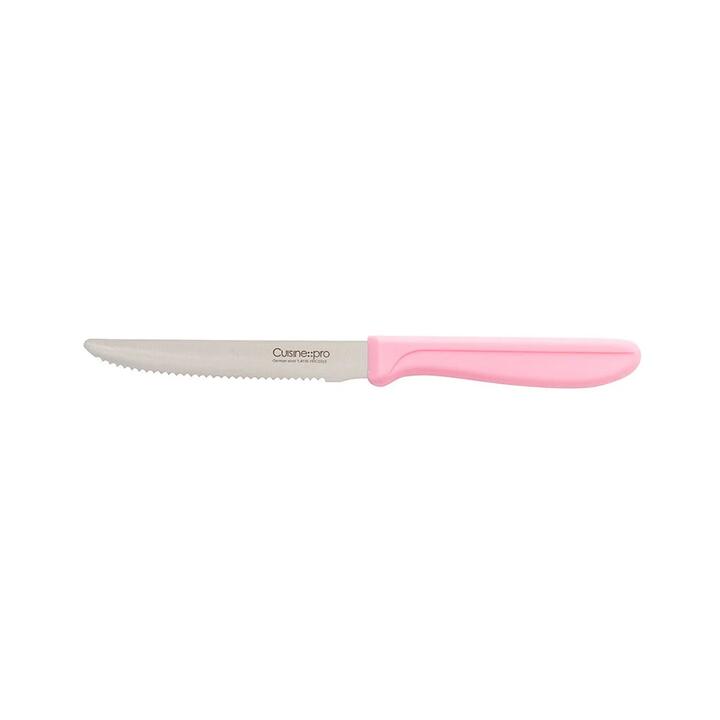 This multi-functional knife is thoughtfully crafted to be an all rounder in the kitchen, more than ready to help out with everyday slicing tasks. It makes itself at home cutting crusts, cheese and softer fruit and vegetables. The Cuisine::pro Classic German Steel Multi Knife is built to last through heavy, regular use, constructed with an ultra-tough German steel blade for lasting durability and high-quality performance. Designed with a playful pink handle to bring a splash of colour to your kitchen, its durable polymer grip is contoured for a comfortable hold, allowing for increased precision and keeping your hand safely away from the serrated blade. Introduce a true all-rounder to your kitchen. Features • Multi-functional knife, guaranteed to slice with precision and ease• Perfect for cutting crusts and softer vegetables• Constructed with an ultra-tough German steel blade for lasting durability and high-quality performance• Perfect for taking care of all kinds of cutting jobs in the kitchen• Designed with a playful pink handle to bring a splash of colour to your kitchen• Durable polymer handle is contoured for a comfortable gripDimensions 11cmMaterial German Steel