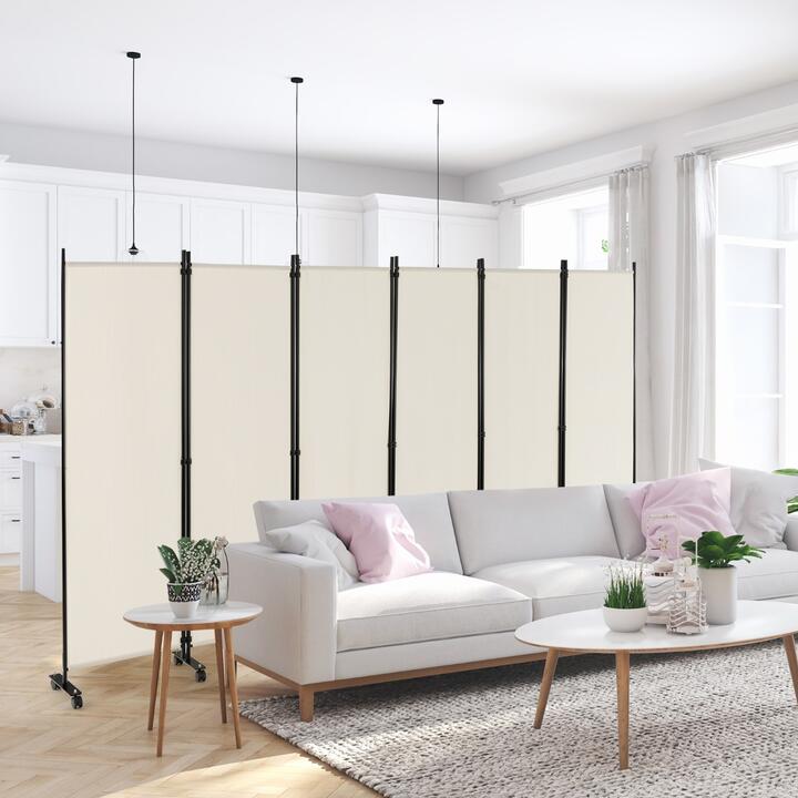 Have you ever been troubled by the unreasonable room layout in your home? The 6-panel room divider will help you solve the problem. Crafted of premium polyester fabric and supported by a metal frame, the privacy screen features great durability and wear resistance and long-lasting use. Thanks to plastic connectors, the panel can be easily turned in either direction or folded to suit different needs. The room partition is equipped with lockable wheels for easy movement and higher stability. In addition to providing a privacy space in your office, the folding privacy screen can be placed in front of the window to block sunlight or used as a great decoration for your home. Bullet Point: Large 6-panel Privacy Screen: Thanks to this 6-panel room divider, you can use it to create a private space, block intense sunlight, or set up a changing area. Additionally, you will no longer be bothered by distractions when working or studying. Overall Dimension: 334.5 x 30 x 172 cm (L x W x H) Designed for Durability & Stability: The folding privacy protection is a firm and well-made piece. Crafted of high-quality polyester fabric, the room divider combines lasting durability and wear resistance into one. Plus, heavy-duty metal tubes account for the reliable structure and provide a long service time. Lockable Wheels for Easy Movement: Compared to another regular screen, the room divider is equipped with 14 flexible wheels for free mobility, ensuring quieter movement and causing less damage to the floor. More, the lockable wheels can secure the privacy screen in place. Flexible & Folding Panels: The panels are connected with durable buckles, allowing you to adjust the direction of this screen as your need, such as L-shaped and W-shaped, etc. Additionally, the room divider can be folded up for storage, which is easy to fit snugly in a corner to maximize your limited space. Wide Usage, More Practical: No matter whether you want to get a room divider to section off the home office area or block out sunlight, this partition is an ideal choice. So simple yet elegant the design of the privacy screen is that it will match well with different home styles, either for living room, bedroom, office, etc. Features: Give you more private space and a separate home office area Selected polyester fabric is durable and wear-resistant Sturdy metal frame gives the room divider reliable support Durable buckles are easy to adjust the direction of this screen as your need Comes with 14 lockable wheels for easy movement Fold to a compact size for easy storage when not in use Simple and modern design adds a different flair to your home Perfect room partition for living room, bedroom, and office Specifications: Colour: Black, White, Brown, Grey Material: Metal, Polyester Unfold Dimension: 334.5 x 30 x 172 cm (L x W x H) Dimension of Each Panel: 56 x 172 cm (L x H) Diameter of Wheel: 4 cm Net Weight: 12.5 kg Package Includes: 1 x Room Divider 1 x User Guide Box Qty:1(May vary by batch)