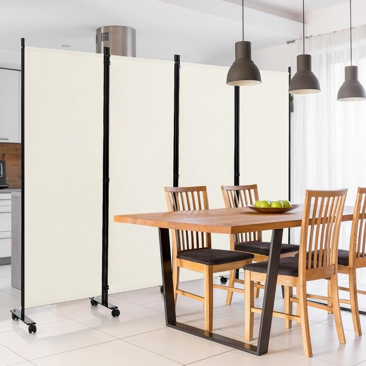 Do you want to have a private space of your own in your room? The 4-panel room divider would be worth considering. The combination of premium polyester fabric and metal frame means great sturdiness, excellent durability and a long lifespan. The panels are connected with durable buckles so you can adjust the direction of this screen as your need. And the foldable design makes it easier to store when not in use and saves much space. The 360° swivel wheels make the movement quieter and easier whether at home or in the office. As an ideal room partition, it performs well in the living room, bedroom, or office. Bullet Point: Give You More Privacy Space: This 4-panel room divider measures 225 x 30 x 173 cm (L x W x H), which can divide the area into several parts to create a privacy space for you. In this way, you are capable of concentrating on your work or study with limited disturbance, enjoying your own time and a safe comfortable social distance. Selected Materials Built to Last: Delicately made of high-quality polyester fabric, the folding room divider shows perfect performance in lasting durability and wear resistance. More, the reinforced metal frame provides ultra-reliable support for the privacy screen. 10 Lockable Wheels for Free Mobility: The folding privacy screen comes with 10 flexible wheels for easy movement. Hence, it can realize smooth movement and 360 degrees swivel without noise, which also protects the floor. And each wheel is equipped with a brake for the emergency lock. Free Combination & Foldable Design: The plastic connectors are convenient to fold the panels in any direction or shape according to your needs, including L-shaped, W-shaped, C-shaped, etc. When not in use, the room divider can be folded into a compact size for storage without taking up much space. Modern Design for Wide Use: The room divider can not only provide a private space in public areas but can place in front of the window to block out sunlight or work as a home decoration. Additionally, its modern design makes it possible to match well with different styles, either for the living room, bedroom, office, etc. Features: Works well as a room divider, privacy screen, and home decoration Premium polyester fabric features great durability and wear resistance The heavy-duty metal frame is not easy to crack or wobble The panels are connected with durable buckles for easy adjustment Comes with 10 lockable wheels for easy movement The folding design is easy to fit snugly in a corner to save space Chic style and clean lines match well with interior decoration Perfect room partition for living room, bedroom, office and backyard Specifications: Colour: Black, White, Brown, Grey Material: Metal, Polyester Unfold Dimension: 225 x 30 x 173 cm (L x W x H) Folded Dimension: 56 x 173 cm (L x H) Dimension of Each Panel: 56 x 173 cm (L x H) Diameter of Wheel: 4 cm Net Weight: 8.5 kg Package Includes: 1 x Room Divider 1 x User Guide Box Qty:1(May vary by batch)