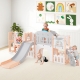 This indoor playground is a hub of entertainment, featuring the swing, steering wheel, peek-a-boo window, aisle, crawling tunnel, telescope, climber, basketball hoop, slides, and storage compartments. The slides are designed for safety and thrills, with handrails and specific zones. The baby swing boasts an anti-falling baffle and a base that can be filled for added stability. As for the climber, it offers secure handrails and textured steps for safety. Crafted with premium HDPE material, this kids slide and climber playset is a reliable option for kids above 1 year old. It not only provides hours of fun but also promotes the development of motor skills, coordination, and social abilities. Bullet Points: 10 in 1 Toddler Slide Playset: This indoor playground is packed with fun features including a swing, steering wheel, peek-a-boo window, aisle, crawling tunnel, telescope, climber, basketball hoop, double slides and storage compartments. Complete with a basketball and inflator, this toddler slide and swing set offers endless entertainment for little ones. Secure Swing & Climber: The safe baby swing is equipped with an anti-falling baffle, with a base that can be filled with water or sand for enhanced stability. For a secure climbing experience, the climber of this kids slide playset features side handrails and enclosed steps with non-slip textures. Double Slides for Fun: Boasting reasonable zoning, the slides are designed with waiting areas, acceleration areas, deceleration areas, and buffering areas. Along with raised handrails on both sides, the slides provide children with a safe yet thrilling sliding. When not in use, the slides can be folded to save space. Kid-Friendly Construction: Made with BPA-free HDPE material, the toddler slide and swing set exudes excellent durability and sturdiness. The burr-free surface and rounded edges create a safe environment for your kids to play, protecting their delicate skin. Educative Gift for Toddlers: Perfect as a gift, this kids slide and climber playset promotes fun playing while fostering motor skills, coordination, and social skills in children over 1 years old. It is AS/NZS IOS 8124 and EN71 compliant to meet safety standards, giving you peace of mind as your little ones play.