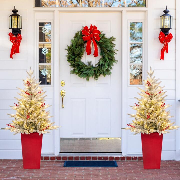 The pre-lit Xmas tree with 313 snow-flocked branch tips creates a vivid appearance that will add a touch of charm to your festive setup. Also, the 12 clusters of vibrant red berries that exude a sense of warmth and joy will transform your space into a wonderland. The addition of 100 warm white LED lights offers a bright and cheerful ambiance, illuminating your surroundings with a soft, inviting glow that captures the essence of the holiday spirit. Crafted with a unique combination of PVC and realistic PE leaves, our decorations are not only visually impressive but also flame-retardant and allergic-proof, ensuring safety mind during the holiday season. Moreover, the magnesium oxide planter adds a touch of sophistication while enhancing overall stability. Therefore, the compact entrance Christmas tree is ideal for living room, office or cafe. Bullet Point: Charming and Realistic Design: The 122 cm Christmas tree features 313 snow-flocked branch tips to emulate the state after being covered by snow. Additionally, the 12 clusters of red berries scattered on the tree provide a lifelike appearance that is sure to captivate your guests. Inviting Illumination: With 100 pre-adorned warm white LED lights, the artificial Christmas tree will illuminate your festive gatherings with the soft glow. The gentle radiance fills any space with warmth, creating a cozy ambiance that is perfect for hosting memorable holiday celebrations. High Quality Materials: Crafted from flame-retardant, no odor and allergic-proof PE and PVC materials, the pre-lit Christmas tree offers a realistic look without compromising safety. Families with children and pets can enjoy the beauty of a natural-looking tree without any worries. Sturdy and Eye-catching Pot: Featuring a red flower pot, the entrance Christmas tree will serve as the focal point for holiday decorations, bringing festive joy to your space. Furthermore, the planter, crafted from magnesium oxide, is crack-resistant and offers stability for prolonged use. Compact Festival Decoration: The exquisite appearance and compact design of the snow-flocked holiday tree makes it a versatile decoration that will enchant all who behold it. Therefore, the potted Xmas tree is an ideal choice to adorn your doorways, living rooms or apartments. Features: 313 snow flocked branch tips create a lifelike appearance 12 clusters of red berries bring festival cheer to you 100 warm white LED lights offer bright illumination Combination of PVC leaves and realistic PE leaves are flame-retardant Magnesium oxide made planter will increase the overall stability Red planter with bright appearance bring festival cheer to you Small design fits various occasions, such as home, store or doorway Specifications: Colour: Green and White and Red Material: PE, PVC, Magnesium Oxide Tree Height: 122 cm Tree Width: 66 cm Pot Size: 26 x 26 x 42 cm (L x W x H) Number of Branch Tips: 313 Number of Red Berries: 12 Number of Tree Trunks: 1 Number of LED Lights: 100 Net Weight: 6.5 kg Package Includes: 1 x Artificial Potted Xmas Tree 2 x pair of gloves 1 x User’s Guide Box Qty:1(May vary by batch) Is Assembly Required: Yes