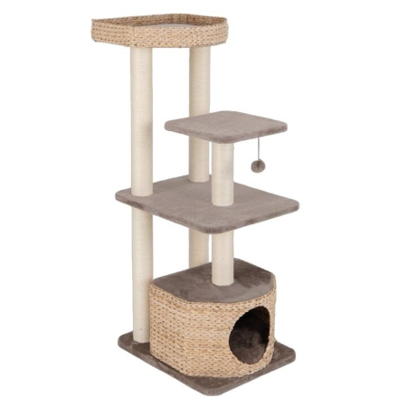This wooden cat tree measures 60 x 48 x 131 cm (L x W x H) and comes with 4 tiers, providing spacious activity spaces for your lovely kitten. Featuring a cozy top perch and a private cat condo, this tree provides the perfect retreat for your cat to unwind and nap in peace. Additionally, the perch and condo are crafted of hand-woven natural cattail material, which is comfortable, breathable, and cool. For adding more fun, we provide several sisal scratching posts to help kittens to grind claws and an interactive dangling ball with a bell for playful interaction. More than that, the cat tree boasts plush fabric coverings and padded cushions, providing ultimate softness and coziness. Choose this cat tree as a testament to your love and care for your feline, ensuring they have a personal paradise within your home. Bullet Point: Luxurious Resting Spots: The luxury cat tree features a cattail top perch with a soft cushion, allowing cats to observe surroundings and bask in the warm sunlight. Moreover, there is a private condo that provides a cozy and breathable hideaway for your cat to retreat and relax. Natural Sisal Scratching Posts: This cat tower is designed with 6 robust scratching posts that are tight and fully wrapped for durability, allowing cats to grind claws and release instincts while protecting your furniture from damage. Moreover, the rope is crafted of natural sisal, which is scratch-resistant and wear-resistant. Premium Hand-Woven Cattail Materials: Crafted with hand-woven natural cattail material, the cat condo and perch exude a sense of luxury while ensuring a breathable and comfortable lounging experience for your pet. Moreover, it is also sturdy and high-strength for long-lasting durability. Comfy Lying Experience: The wooden cat tree boasts soft padded cushions with soft plush fabric covering that provide a comfy and skin-friendly touch, bringing warmth and ultimate comfort to your lovely cats. Additionally, the cushions are removable for easy cleaning. Interactive Danging Ball: This cat climbing furniture is designed with an interactive plush dangling ball with bell, which entices play and piques curiosity, ensuring your cat remains engaged and active. Features: The warm top perch with protective edges provides a comfy and safe resting spot The spacious hideaway condo provides a private area to enjoy a long nap Features 2 jumping platforms for your cat to exercise and play The sisal scratching posts allow kittens to release the scratching urge The posts are covered by natural sisal ropes, safe, reliable, pet-friendly The natural cattail through exquisite craftsmanship is smooth and burr-free The padded cushions provide a warm and soft touch for kittens to nuzzle on it The cushions can be easily removed for daily cleaning, keep hygienic The plush dangling ball entices playful interaction and adds more fun Specifications: Colour: Coffee+Natural Material: Engineered Board, Cattail, Plush, Sisal Overall Dimensions: 60 x 48 x 131 cm (L x W x H) Size of the Perch: 48.5 x 44 x 8 cm (L x W x H) Size of the Condo: 45 x 40 x 30 cm (L x W x H) Diameter of the Condo Entrance: 22 cm Weight Capacity of Each Layer: 10 kg Net Weight: 16 kg Package Includes: 1 x Cat Tree 1 x User’s Manual Box Qty:1(May vary by batch)