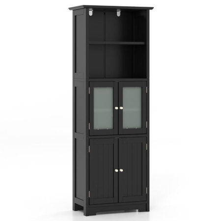 Are you still looking for a storage cabinet to reduce clutter? If so, this 163cm tall floor cabinet is the ideal choice! This tall bathroom cabinet with 6-tier storage space will be a great helper to keep your room neat. 2 open compartments and 2 enclosed cabinets with doors & adjustable shelves provide roomy space for holding your shampoos, conditioners, towels, perfumes or other stuff. Apart from that, you can place this cabinet in the kitchen to store kitchen utensils, or in the study room, or living room for books& collections. Made of premium MDF and sprayed with waterproof paint, this bathroom storage cabinet can serve you for a long time. Besides, the back anti-toppling devices are designed for safe use. 4 raised legs keep the cabinet from water immersion and make it easy to clean the floor. Bullet Point: 6-Tier Enclosed & Open Storage Space: Equipped with 2-tier open storage shelves and 2 cabinets with doors, this tall bathroom storage cabinet offers large storage space to keep various items well organized. Besides, two 3-position adjustable shelves allow you to customize interior storage space as you need. Premium Material & Stable Structure: Made of thick and durable P2 MDF with smooth paint, this floor storage cabinet can withstand the test of time. And the frosted tempered glass doors are not easily broken for safer use. Meanwhile, the cabinet features 2 anti-toppling devices to prevent wobbling or tippling over for added safety. Wide Range of Application: This 163cm tall floor cabinet can keep your home neat, which is suitable for any room that needs additional storage space. In addition to being used as a bathroom storage cabinet, it can also work as a pantry cabinet/cupboard in the kitchen or dining room or a side cabinet in the living room. Elegant Look & Convenient Use: The pure white finish, sleek lines and stripe design on the cabinet surface add a touch of beauty and modern charm to this tall floor cabinet. Moreover, the handy round handles and functional magnetic catches help you to open and close the doors with ease. Hassle-free Assembly & Easy Clean: This freestanding bathroom storage cabinet comes with numbered parts and easy-to-understand instructions to make the assembly work a breeze. What's more, the painted surface is easy to wipe clean with a damp cloth and 4 stable raised legs help to clean up the floor easily. Features: 2 open shelves and 2 cabinets with doors provide a large storage space 3-position adjustable shelves can be removed and are easy to adjust High-quality MDF and tempered glass doors support long-term use Exquisite metal knobs allow you to open the doors with ease The anti-toppling devices prevent you from accidental injury Magnetic catches keep the cabinet doors closed firmly Widely used in bathrooms, kitchens, living rooms, dining rooms, etc The smooth surface is easy to clean with a damp cloth The modern and simple design perfectly fits any home style 4 raised legs to avoid water damage and ensure easy clean Easy to assemble with detailed instruction Specifications: Colour: White/Grey Material: P2 MDF, Tempered Glass Product Dimension:60cm x 30cm x 163cm Net Weight: 22 kg Weight Capacity of Top/Middle/Bottom Panel: 20 kg Weight Capacity of Each Shelf: 15 kg Package Includes: 1 X Tall Storage Cabinet 1 X User Guide Box Qty:1(May vary by batch)