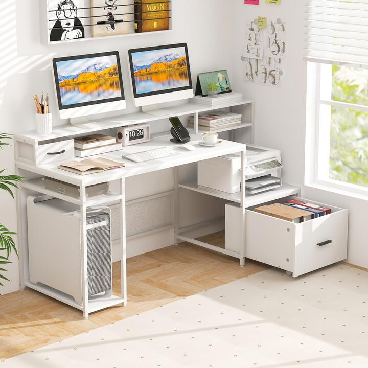The built-in power outlets and USB ports make it easier to charge multiple devices while working. The long computer workstation provides plenty of space for monitors and other office equipment. Meanwhile, the ergonomic monitor stand helps to reduce neck and eye strain by elevating the screen to a proper viewing height. The file drawer and various storage shelves are practical solutions to keep your papers, printer, and folders neatly stored and easily accessible. In addition, a CPU holder provides storage space for a computer host. The computer desk is a stable unit, not only for the sturdy metal frame, but also for the adjustable foot pads. Moreover, the industrial work table is a versatile piece that can be used for home and office, which is a fusion of sturdiness, stability and durability. Bullet Point: Recessed Power Strip: Equipped with 2 power outlets (220-240V/10A) and 2 USB ports (5V, 2.1A), the home office desk is convenient for charging various devices, eliminating the hassle of searching for available sockets. Ergonomic Large Workstation: This 170 cm long computer desk is spacious to hold 2 monitors and provides generous work surface for you. More, the monitor stand raises the screen to eye level, reducing strain on your neck and promoting better posture during long hours of work or study. Well-organized Workspace: The computer workstation features a rolling file drawer for letter/legal size files and a CPU stand for computer host. The foldable fabric drawer on the desktop and various storage shelves keep books, printer and office supplies organized. Reliable Metal Structure: Powder-coated metal frame presents great sturdiness and durability. And adjustable foot pads at the bottom improve stability. Together with thickened board, the computer desk is a reliable addition to your home. Versatile and Functional Desk: Beautiful wood grain and black metal frame flawlessly go with interior decoration. Whether you need a spot to study, play games or just finish important work, the industrial home office desk is an ideal choice. Features: 2 power sockets and 2 USB ports for convenient charging Wide desktop offers ample storage space and work area Raised shelf reduces strain on your neck and improves posture Features a large drawer for letter/legal size files The file drawer comes with 4 wheels for easy movement Foldable fabric drawer and printer shelf keep office supplies in order Anti-falling design effectively prevents the drawer from falling CPU stand provides storage space for large computer tower Powder-coated metal frame is not easy to crack or deform Adjustable foot pads keep balance on uneven ground Perfect for working, studying, writing, or gaming, etc. Long power cord is convenient for plugging Specifications: Colour: Rustic Brown and Black Material: Engineered Wood, Metal, Fabric Overall Dimension: 170 x 60 x 90 cm (L x W x H) Dimension of Table: 120 x 60 x 75 cm (L x W x H) Dimension of CPU Stand: 60 x 26 x 53.5 cm (L x W) Dimension of Printer Shelf: 60 x 50 cm (L x W) Interior Size of File Drawer: 41 x 54.5 x 27 cm (L x W x H) Interior Size of Fabric Drawer: 28 x 16.5 x 11 cm (L x W x H) Height Between Monitor Stand and Tabletop: 13.5 cm Width of Monitor Stand: 20 cm Height Between Mesh Storage Shelf and Tabletop: 11 cm Length of Legroom: 87 cm Rating: 10A 220-250V, 50/60 Hz USB Port: 5V Max. 2.1A Power Cord Length: 150 cm Net Weight: 34.5 kg Weight Capacity of Tabletop: 60 kg Weight Capacity of Printer Shelf: 60 kg Weight Capacity of Shelf: 15 kg Weight Capacity of Fabric Drawer: 40 kg Package Includes: 1 x Computer Desk 1 x Instruction Box Qty:1(May vary by batch)