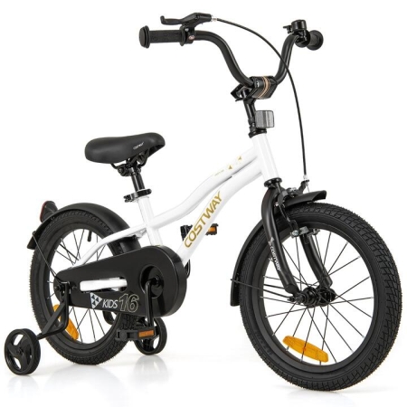 The adjustable handlebar and seat fit children of different ages and heights. Whether your child is just learning to ride or is ready to explore around, this bicycle provides a safe and enjoyable experience. The handbrake and coaster brake enable your child to easily brake. It also comes with 2 removable training wheels, allowing beginners to gain confidence and keep balance. Featuring 2 premium rubber tires and a strong metal frame, this bike ensures excellent strength and stability. Moreover, the bicycle features front and rear reflectors to enhance visibility during low-light conditions. The kickstand (only for 18-inch bikes) is also included for parking. It also has passed AS/NZS 1927 and CPN No.6 of 2004 certification. Get your child ready for a fun and independent riding adventure! Bullet Point: Adjustable Handlebar & Seat: The height-adjustable children bicycle can grow with your little one aged 3-4/3-5/4-7/4-8 years old. The handlebar height can be adjusted from 66 cm to 69 cm/74 cm to 77 cm/80 cm to 83 cm/ 83 cm to 86 cm, while the saddle height can be adjusted from 43 cm to 49 cm/ 49.5 cm to 55 cm/ 53 cm to 62.5 cm/ 57.5 cm to 66.5 cm. Dual Brake System for Stopping: The hand brake is easy to control with shorter grip distance, bringing kids much convenience. The coaster brake makes it convenient to stop by pedaling backward. Additionally, kids can also use the handlebar to control the direction while riding. High Quality Wheels for Riding: The kids bike is equipped with 2 shock-absorbing and wear-resistant rubber wheels for a smooth and stable riding experience. Plus, it also has 2 training wheels to help beginners keep balance and gain confidence. If needed, the training wheels can be removed to let young riders enjoy riding fun. Safe & Enduring Construction: The enclosed chain guard prevents pinching. The reflectors add extra safety. It also features AS/NZS 1927 and CPN No.6 of 2004 certification. Moreover, the solid metal frame withstands multiple bumps for long-lasting service life. The kickstand (only for 18-inch bikes) allows your kids to ride more courageously. Simple Assembly & Dimensions: The bike is pre-assembled, making installation a breeze. The finished dimensions are Note: Please measure kid’s INSEAM and compare with SADDLE HEIGHT to check if the rider can touch the ground. Features: Adjustable handlebar and seat make it ideal for 3-4/3-5/4-7/4-8 years old kids Designed with dual brake methods: hand brake and coaster brake Quick release lever to adjust or fix the seat height The 5-layered rubber tires for excellent anti-slip performance AS/NZS 1927 and CPN No.6 of 2004 certification for safe use 2 detachable training wheels for added safety and steadiness Front and rear reflectors keep kids visible in low-light conditions Non-slip pedals and ergonomic seat for effortless and cozy riding Pre-assembled design and detailed user manual for quick assembly Solid metal frame for excellent strength and sturdiness Bike bell provides kids with added fun *Comes with a kickstand to park (Only for 18-inch bikes) Specifications: Color: Purple/ Red/ WhiteMaterial: Metal, Rubber, PP, TRP, PVC —-(12 inches)—-Product Dimension: 86 cm x 51 cm x 66-69 cm (L x W x H)Saddle Height: 43-49 cmSuitable Height: 80-105 cmInseam Size: 41-47 cmWheel Size: 30 cmSuitable Age: 3-4 Years OldWeight Capacity of Seat: 60 kgNet Weight: 8.5 kgGross Weight: 10 kg —-(14 inches)—-Product Dimension: 104 cm x 51 cm x 74-77 cm(L x W x H)Saddle Height: 49.5-55 cmSuitable Height: 95-110 cmInseam Size: 47-53 cmWheel Size: 36 cmSuitable Age: 3-5 Years OldWeight Capacity of Seat: 60 kgNet Weight: 9.5 kgGross Weight: 11 kg —-(16 inches)—-Product Dimension: 114 cm x 54 cm x 80-83 cm(L x W x H)Saddle Height: 53-62.5 cmSuitable Height: 105-130 cmInseam Size: 51-60 cmWheel Size: 40 cmSuitable Age: 4-7 Years OldWeight Capacity of Seat: 60 kgNet Weight: 10.5 kgGross Weight: 12 kg —-(18 inches)—-Product Dimension: 128 cm x 54 cm x 83-86 cm (L x W x H)Saddle Height: 57.5-66.5 cmSuitable Height: 120-150 cmInseam Size: 55-64 cmWheel Size: 45 cmSuitable Age: 4-8 Years OldWeight Capacity of Seat: 60 kgNet Weight: 11.5 kgGross Weight: 13.5 kg Box QTY: 1 Package Includes: 1 x Kids Bicycle 1 x User Manual