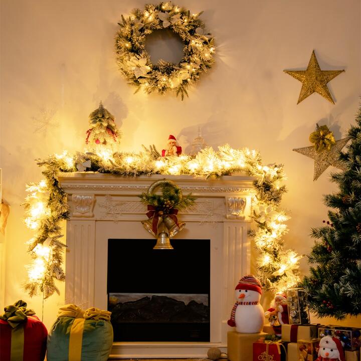 Take a warm decoration for your holiday! This pre-lit Christmas garland features snow-flocking, pure white berries, lily-white flowers, and 50 pre-strung warm white lights with a 6-hour timer to provide you with cheerful Christmas vibes. The 280 cm Christmas garland is made of fire-resistant, non-allergic premium material to accompany you and your family for many warm and joyous Christmases. Garland features excellent flexibility and elasticity, so you can fold it into any shape you like, which can be displayed in the door, window, fireplace, stair railing, or any indoor or outdoor position (under the roof). A great choice as a housewarming gift for friends and family on Christmas, fall, winter, and festivals! Bullet Point: Battery-Operated LED Lights with Timer: Pre-strung with 50 battery-operated warm white LED lights with integrated 6 hours On/ 18 hours Off timer (need 3 AA batteries, not included), bring a charming and festive glow to light up your house. You can put it anywhere you like, indoors or outdoors covered porch, without worrying about not having a place to plug it in. 100% New PVC & PE Material: The snow-flocked set is made of 100% new PVC & PE material rather than recycled material, capable of providing a better using experience. After all, premium material features excellent fire-resistant and odourless character. It is surely a family-friendly as well as safety decoration in your house. Delicate & Rich Ornaments: This eye-catching Christmas set are covered with a lot of simulated artificial snow, which is not easy to fall off and blends perfectly with the winter scenery. Decorated with pure poinsettias flowers and frosted white berries, it delivers a strong Christmas atmosphere and creates a wintry feel to your holiday decor. Lush & Vivid Appearance: With crafted branch tips, this pre-lit Christmas set is as charming as the real thing. It is trimmed with various of shapes leaves, all together contributing to a great-looking design. Meanwhile, exquisite craftsmanship and specialized design make Christmas wreaths delicate as well as elegant. Versatile Decoration: This artificial set is an attractive addition for indoor and outdoor covered porch decoration, especially for Christmas. By using it as a Christmas decoration or for various festivals, party celebrations, centre displays in the living room, door frames, stairs, or mantels, this beautiful wreath can greatly add charm to your Christmas season. Features: A realistic appearance with rich ornaments adds a more attractive feeling branch tips covered with classic flocking snow emulate a real garland and wreath Pre-strung 50 white LED lights are energy-efficient and long-lasting Warm lighting controlled by 6H On and 18H off timer automatically 100% new odourless PVC & PE materials look vivid and ensure a long lifespan Powered by 3 AA batteries (not included), easy to install and store Perfect for indoor decoration, suitable for homes, offices, etc. Specifications: Colour: White Material: New PVC, New PE Battery Powered:3 XAA (not included) Garland: Dimension: 280cm Net Weight: 1.2kg Number of Tips: 180 Number of Lights: 50 Wreath: Diameter: 60 cm Net Weight: 1 kg Number of Tips: 114 Number of Lights: 50 Package Includes: 1 x Pre-lit Snow Flocked Christmas Garland 1 x Pre-lit Snow Flocked Christmas Wreath Box Qty:1(May vary by batch) Is Assembly Required: Yes