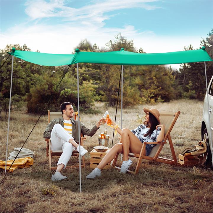 Enjoy the great outdoors while remaining almost totally protected from the sun's harmful rays with our high-quality Lycra shelter. This shelter is easily set up and can be angled out to provide a large covered area for relaxation during camping, fishing or beach volleyball break. This tall beach canopy is extremely light, durable, tear-resistant and even water-repellent for long-term use. Moreover, with metal edges, bonus sandbags and additional 4 peg stakes, the sunshade will stand firmly on the beach and other possible terrains according to your personal needs. Thousands of families are using this beach sun shelter to keep their kids safe, happy and out of the sun! It comes packed in a waterproof carry bag with a zipper and weighs only 3.2 kg/4.1 kg so you can sling it over your shoulder and take it anywhere! Bullet Point: Large Sun Shelter: This beach sunshade measures 210 x 210 x 180 cm/300 x 280 x 200 cm (L x W x H), which is spacious enough for 3-4 adults/6-7 adults to lie down, providing a comfortable shading area for your outdoor activities. It is perfect for holding small parties or gatherings with family and friends in the outdoor area. Durable & Sturdy Material: The beach tent canopy is crafted with premium polyester Lycra fabric, which is not only waterproof, wear-resistant, and tear-resistant for long-term use, but also provides UPF50+ sun protection. Besides, the supporting poles are constructed of high-strength and rustproof aluminium, ensuring good sturdiness. Excellent Windproof Performance: The beach sun shelter is equipped with 4 sandbags and a sand shovel for quickly holding a large amount of sand, enhancing wind resistance. And there exist 4 peg stakes for fixing the canopy on the grass. In addition, the aluminium pole with a pointed stake is easy to anchor into the sand or ground. Portable & Lightweight Design: The aluminium poles can be folded into a compact size for storage, and there is a carrying bag to store the folding beach sunshade, which would not take up much space for easy storage and transportation. And it only weighs 3.2 kg/4.1 kg, allowing you to bring it anywhere you want. Easy Setup: The beach sunshade is easy to set up, and all you need to do is unfold the poles, then fix the canopy with the elastic cords, and then fill it with sand. More than that, you can use all 4 poles to make a taller canopy and creates a bigger usable shade area, or use just 2 poles you can customize a private relaxing sunshade zone with wanted angles. Features: Vivid colours make your beach sunshade an eye-catching spot during trips High-quality supporting pole, sandbags and matching peg stakes for added stability 210 x 210 cm/300 x 280 cm sunshade blocks harmful rays with UPF 50+ sunlight protection Large underneath activity area allows maximum of 3-4/6-7 adults to lie down effortlessly Extremely light, durable, tear-resistant and even water repellent for long-term use 4 folding aluminium poles adopt secure plastic ball tops and unique pointed ends 4 sandbag anchors are easy to fill and connected by strong ropes to canopy corners Carry-on bag provided and allows you to have all the parts packed inside Assembly is a breeze if you follow our step-by-step instructions Specifications: Colour: Blue/Green Material: Polyester Lycra Fabric, Aluminum, Oxford Fabric Overall Dimensions: 210 x 210 x 180 cm/300 x 280 x 200 cm (L x W x H) Net Weight: 3.2 kg/4.1 kg Package Includes: 1 x Beach Sunshade 4 x Aluminum Pole 4 x Sandbag 4 x Peg Stake Box Qty:1(May vary by batch)