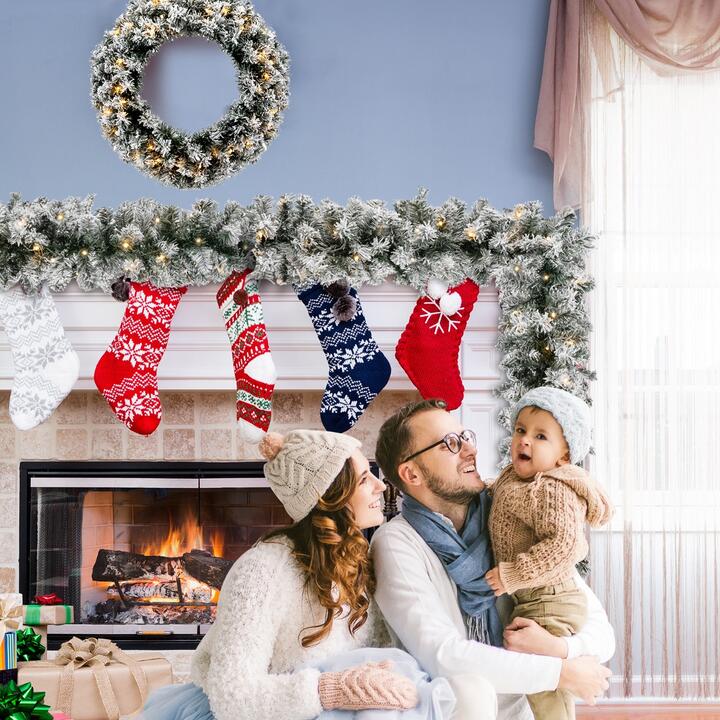 A wonderful Christmas needs a lighted-flocked set like this! Composed of 140 PVC branch tips, the holiday rattan and wreath perform a vibrant appearance while gaining better fire and fade resistance. Press the "on" button and LED lights will be turned on to glow warm white. If you press the "timer" button, the Christmas rattan will emit warm white lighting for 8 hours and then be turned off for 16 hours. By the way, the IP44 battery box needs three batteries which are not included. Finally, Christmas rattan can be used alone or in combination to suit different occasions, such as fireplaces, doorways, stairs, etc. Bullet Point: Flocked Design for Decoration: Unlike common evergreen flower vines, the holiday rattan features a white snowy look, echoing the wintry scene outside the window. Also, it comes with ample space where you can hang your ornaments to create an exclusive Christmas decor. Lush Appearance for Vibrancy: The Christmas rattan and wreath present a life-like design since it comes with 140 vivid branch tips. Plus, all of them are made of premium PVC which is not only fade-resistant for a longer service life but also fireproof and non-allergic for worry-free family use. Dreamy Warm White Lighting: Among staggered branches, there are evenly distributed LED lights, lighting up the Christmas rattan in the nighttime to create a loving holiday vibe. Especially at a party, the warm white lighting will deliver your sincere blessings to all guests. Practical Timer for Convenience: The rattan and wreath are equipped with a battery box, which also features an IP44 certification for security, to control the timer. As long as you press the button, all lights will be turned on for the last 8 hours and then turned off for the last 16 hours. Plus, it needs 3 batteries which are not included. Works Well in Diverse Scenarios: After receiving the package, you can use rattan and garland alone to decorate your Christmas party, or they can be used in combination to achieve a more perfect effect. The Christmas rattan is ideal for a staircase, fireplace and home gate. Features: The flocking suit is very eye-catching Displays a vibrant appearance with 140 branch tips Selected PVC material with perfect fire and fade resistance To glow warm white at night with pre-lit LED lights Comes with a timer function for automatic on and off Requires three AA batteries which are not included Can be freely adjusted to fit different spaces Applicable to the staircase, fireplace, home gate and more Can be directly used without any assembly Specifications: Colour: Green & White Material: PVC, Steel Rattan: Product Dimensions:270 x 1 x 1 cm (L x W x H) Net Weight:1 kg Wreath: Product Dimensions:61 x 61 x 1 cm (L x W x H) Net Weight:1 kg Package Includes: 1 x Christmas Rattan 1 x Christmas Wreath Box Qty:1(May vary by batch)