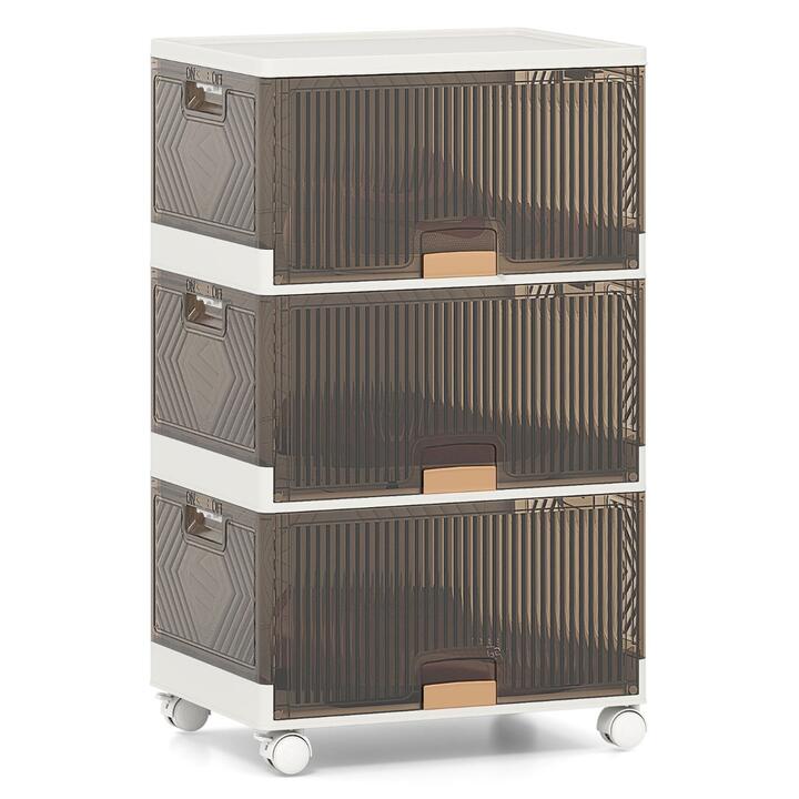 The foldable shoe box is constructed with sturdy materials, ensuring its longevity and functionality. The storage bins with lids are ideal for keeping your shoes or other items neatly organized. With a transparent design, the flip doors not only allow for easy identification of shoes but also add a stylish touch to your space. Featuring lockable universal wheels, this portable shoe rack provides convenient mobility and enhanced stability. Installation is easy with its interlocking design. When not in use, the large sneaker cabinet can be folded into a compact size to save space. Bullet Points: Large Storage Capacity: Boasting 3/4/6 stackable boxes, this shoe rack organizer accommodates men’s and women’s footwear. The efficient storage solution lets you easily categorize not only your shoe collections but also other items, promoting a clean and organized home. Clear and Accessible Design: The transparent design showcases your stylish shoes while allowing for easy identification and retrieval of the perfect pair. Equipped with convenient handles, the flip doors offer direct access and enhance your experience. Lockable Universal Wheels: Featuring 4 universal wheels, this shoe box organizer box offers effortless mobility from one room to another. Moreover, 2 of the wheels are lockable to ensure stability when the large sneaker cabinet is stationery. Designed for Durability: Made with high-strength materials, the collapsible storage box can withstand daily use, promising long-lasting functionality. Its sturdy design makes this storage organizer an essential piece for maintaining organization over time. Easy to Install and Save Space: With an easy-to-stack, interlocking design, setting up is a breeze, saving you time and effort. Additionally, this portable shoe rack can be folded into a compact size for space-saving storage when not in use, suitable for dorms or small apartments. Specifications: Color: Brown+ White Materials: ABS, PP 3-Tier: Overall Dimensions: 37.5 x 27.5 x 63 cm (L x W x H) Interior Size of Each Cube: 35.5 x 25.5 x 19 cm (L x W x H) Weight Capacity of Top: 5 kg Weight Capacity of Each Cube: 5 kg Net Weight: 2 kg 4-Tier: Overall Dimensions: 37.5 x 27.5 x 82 cm (L x W x H) Interior Size of Each Cube: 35.5 x 25.5 x 19 cm (L x W x H) Weight Capacity of Top: 5 kg Weight Capacity of Each Cube: 5 kg Net Weight: 3 kg 5-Tier: Overall Dimensions: 37.5 x 27.5 x 121 cm (L x W x H) Interior Size of Each Cube: 35.5 x 25.5 x 19 cm (L x W x H) Weight Capacity of Top: 2.5 kg Weight Capacity of Each Cube: 2.5 kg Net Weight: 4.5 kg Box QTY: 1 Package Includes: 1 × Shoe Rack Organizer 1 × Instruction