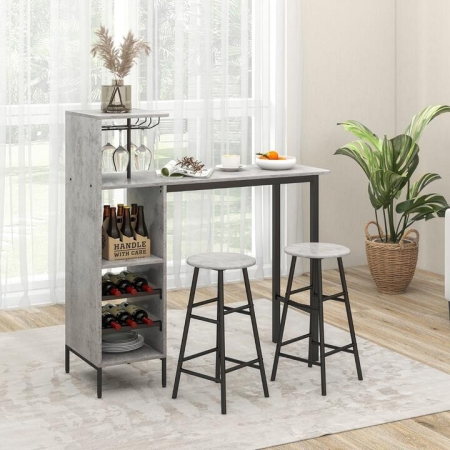 If you are eager to refresh a place with brilliant ideas, why not put our bar table set in the kitchen counter, restaurant or bar? From premium materials to stylish designs, this set of bar table and chairs will bring you great satisfaction. The table and chair combination is made of eco-friendly P2 grade of chipboard, which has extremely high durability and toughness. The crossbar at the bottom of the bar not only allows your feet to rest, but also acts as a reinforcement. When you sit in front of the bar and drink, the solid bar stool will strongly support you. Bullet Point: Sturdy & Durable Construction: Made of high-quality P2 particleboard, the 3PC set are wear-resistant without easy deformation and breakage, ensuring long-term use. The square metal legs ensure that the stool has excellent bearing capacity of 113 kg. And the solid metal legs and crossbar make this table stable enough with excellent bearing capacity of 100 kg. Space-saving Design: This bar table has a compact size of 120 x 40 x 100 cm (L x W x H), which is ideal for small spaces. And there is a spacious space under the table for placing stools. For people with limited space and extra storage needs, it’s definitely an ideal solution to maximize space utilization. Simple & Modern Appearance: The simple lines and beautiful faux marble texture create a relaxed and fashionable appearance, which can complement various modern decorative themes. Wide Range of Application: With a unique industrial look, these 3-pc set are eye-catching decoration no matter where they are placed. It's the best choice beside a high dining table or kitchen counter and is suitable for restaurants, bars, cafes, patios, family kitchens or other places. Easy to Assemble and Clean: With detailed assembly instruction and all hardware delivered, it is easy to set up your bar stools and table. The smooth surface facilitates daily maintenance, stains left on the stools can be quickly wiped with a soft damp cloth, which saves your time and labor. Features: Made of superior P2 particleboard to ensure durability Thicken structure and square legs, stable and safe to use Bar counter with adjustable feet for added stability Modern marble-style table top adds a chic and elegant look Suitable for narrow spaces of reasonable size Perfect for restaurants, cafe, pub, bar, kitchen With clear instructions, easy to install Specifications: Color: White Material: P2 Particleboard + iron Overall dimension of table: 120 x 40 x 100 cm (L x W x H) Overall dimension of stool: 30 x 30 x 70.5 cm (L x W x H) Net weight of table: 14 kg Net weight of each stool: 7.5 kg Weight capacity of table: 100 kg Weight capacity of each stool: 113 kg Package includes: 1 x Bar Table 2 x Bar Stool 1 x Instruction Box Qty:2(May vary by batch)