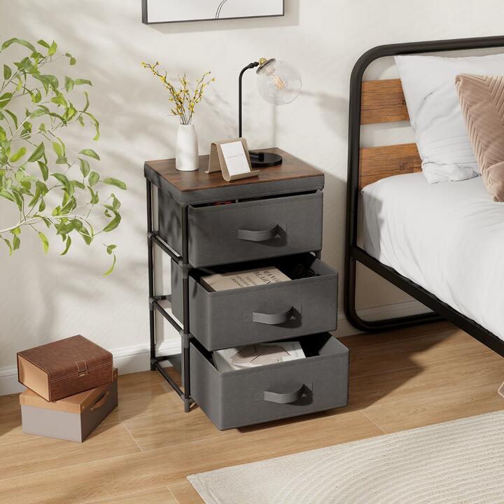 Worried about your cluttered home? This storage drawer unit will greatly improve your quality of life and keep your rooms free from clutter. 3 drawers and a wide top surface provide plenty of storage space for your clothes, glasses, lamps, books and other items. The sturdy metal frame provides stable support. And non-woven drawers are not only easy to fold, but also resistant to wear and tear, making them perfect for long-term use. There is no doubt that this drawer storage tower is ideal for bedrooms, living rooms, hallways, and small apartments. With such a practical organizer at your fingertips, what are you waiting for? Come on and place your order! Bullet Point: 3 Tiers Large Storage Space: The internal dimensions of each drawer are 38cm x 28cm x 14.5cm(L x W x H). Each drawer can hold 12-15 shirts, providing you with enough storage space. 3 layers design is convenient for you to classify your items. And the delicate skeletonized handles allow you to reach items easily. Stable Structure and Selected Materials: The top of our cabinet can hold up to 20kg for all kinds of desk lamps or telephones. The non-woven fabric is breathable and hard-wearing, perfect for long hours of use. Moreover, the strong PP connectors further increase the stability of the structure. Foldable Non-Woven Drawers: You just have to take off the drawer base and then you can fold the non-woven drawers easily. This design allows our drawer cabinet to be used as an open shelf as well. And the metal frame can also be removed for easy storage. Multi-purpose Chest of Drawers: The classic storage chest in light gray can easily match any home style. You can put it next to your bed as a tall bedside table or in a closet for extra storage space. Of course, using it as an entryway cabinet is also a good choice. Easy to Install: The structure of this 3-drawer dresser is very simple. You just need to combine the metal rods with PP connectors and you will get a perfect storage cabinet in no time. The package will come with detailed instructions to help you finish quickly. Features: 3-tier large-capacity storage cabinet bring ample storage space Each drawer can hold 12-15 shirts Non-woven fabric is very hard-wearing and can be used for a long time Rustic appearance and classic shape make the chest of drawers suitable for different decoration styles Multi-functional storage for closet, bedside and entrance hall Foldable drawers allow you to use the chest of drawers as an open shelf as well Sturdy PP connectors for further structural stability Easy to install with detailed instructions Specifications: Color: Grey Material: Non-woven Fabric, Metal, MDF, PP Overall Dimension: 40cm x 30cm x 62cm (L x W x H) Internal Dimension of Drawer : 38cm x 28cm x 14.5cm(L x W x H) Net Weight: 8 kg Maximum Weight Capacity of Drawer: 10 kg Maximum Weight Capacity of Top: 20 kg Package includes: 2 x Storage Cabinet 1 x Instruction Box Qty: 1(May vary by batch)