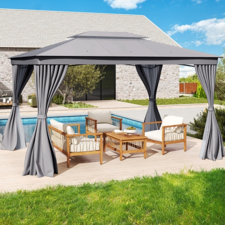 Our brand-new canopy gazebo is your best choice for your yard. You can enjoy the shade under it. It is constructed of a powder-coated, rust-resistant steel frame and water-proof, fade-proof with sunshine-resistant PU-coated polyester fabric cover is built to last while protecting you from sun and inclement weather for years to come. Built with a sloping dome design helps ensure proper water drainage. The loop straps allow you to conveniently fix the curtains onto the frame of your structure. Double-tier roof design expands the height of the canopy and provides proper ventilation and airflow. With 3M length and 3M width, our gazebo tent is roomy enough for your party and relaxing in solace to entertain guests. High-quality mosquito netting with zippers, fully enclosed keeps you from disturbing mosquitoes and other insects. Ideal for daily or recreational use, such as parties, outdoor events, camping, picnics and any other occasion. Bullet Point: Premium Material Ensure Durability: Our gazebo canopy is constructed with powder-coated steel which is rust-resistant and anti-corrosion for any weather condition. Cover with 150g coated polyester fabric is built to last while protecting you from rain and sunshine. Providing you with a fine shelter during all seasons. Meticulous Design: Our gazebo canopy is designed with a double-tier roof, which keeps airflow adequate but keeps rain and winds out. Meanwhile, the extended top fabric cover with grommets helps ensure proper water drainage. It will keep you cool when relaxing in the summer and preserve your shelter for seasons to come. Private Mosquito Net: Our gazebo canopy is fully surrounded by mosquito mesh netting which includes zippers, to keep bugs and sunshine out, and make the conversation truly private. Equipped with a plastic hook, it is easy to pull the netting and enjoy the outdoor view. Large Space Canopy For Any Activity: This 3M X 3M gazebo provides you large shade area, 8 metal stakes and ropes are offered for you to fix the canopy. You can relax and enjoy outdoor activities such as small businesses, craft shows, tailgate parties, picnics, camping, parties, BBQs, vendors, flea markets, outdoor sporting events, etc. Without worrying overturned. Easy to Assemble: All necessary hardware and installation manual included, you can easily assemble according to the instructions yourself. All steel pipes are designed with buckle and plastic connections, more stable. And you can easily disassemble it and store it without any space. Features: High quality and brand new Solid steel frame, durable and sturdy Beautiful design and appearance Nice-looking decorative patterns 150g khaki polyester fabric, easy to clean A perfect cover to keep out the UV and rain Waterproof top Practical and useful Perfect outdoor companion A wonderful shelter for outdoor life High-quality mosquito netting with zippers, keep you from disturbing mosquito and another insect Double-tier canopy top provides proper ventilation and airflow 8 pcs metal stakes to fix the canopy to the ground String to fasten canopy leg fabric All steel pipes are designed with buckle connections, more stable Add up to enjoyment Bring you a happy mood Assembly required Specifications: Colour: Beige/Coffee Material: Steel and polyester fabric Overall Dimension Of This Item: 300 cm X 300 cm X 265 cm (L X W X H) Product Weight: 12 kg Package Includes: 1 x 2-tier Canopy Tent Box Qty:1(May vary by batch)