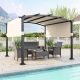 This 305 x 305 cm outdoor pergola provides a 9.3 m2 large footprint, which is ideal for enjoying outdoor entertainment with your family and friends. In particular, the canopy can be easily extended or retracted from 2 sides, which allows you to adjust the amount of sun exposure depending on the sun's position and your desired level of comfort. And the canopy is crafted of flame-resistant and weatherproof polyester fabric, providing added safety and longevity. Thanks to its thick metal columns and 4 corner reinforced plates, this pavilion provides unparalleled durability and stability. With its unique and elegant appearance, this pergola could also add a touch of charm and style to your outdoor living space. Bullet Points: Spacious Sunshade Area: This outdoor pergola measures 305 x 305 x 218 cm (L x W x H), provides ample shade for a complete outdoor dining set or wicker sofa set. It is ideal for family gatherings, social events with friends, or even used as an outdoor grilling gazebo. Retractable Canopy: This canopy features a simple retractable design, which allows you to adjust the canopy lengths from both sides, accommodating varying sunlight angles. Besides, it boasts hook and loop fasteners for fixation, preventing it from blowing away. Premium and Reliable Material: The sunshade canopy is crafted of premium polyester fabric, which is drizzle-resistant, sun-protective, fade-resistant, and tear-resistant, ensuring long-term outdoor use. And it meets CPAI-84 flame-resistant standards for better safety. Sturdy and Stable Construction: The outdoor pergola is supported by a high-strength powder-coated metal frame, which is rustproof, sturdy, and built to last. Moreover, it features anchoring plates with pre-drilled holes, allowing for secure placement on the soft ground (includes 8 metal stakes for fixation), or on the hard ground (requires expansion screws for fixation, not included). Arched Roof and Extended Eaves: In contrast to the flat top design, this metal pergola adopts an arched roof, which could reduce the pressure of standing water while adding a touch of sophistication. Additionally, there are extended eaves for hanging lights or decorations. Features: Equipped with a retractable canopy, provide optimal shade at any sun position The canopy can be fixed, prevent the canopy fabric from fluttering in the wind Adopts 80 x 80 mm thick supporting columns, sturdy and reliable The thick supporting columns ensure a solid foundation, enhance overall stability The premium polyester canopy is resistant to sunlight, water, and fading With anchoring plates and pre-drilled holes, provide excellent wind resistance Suitable for installing on different types of grounds, for soft or hard ground Utilize expansion screws (not included) for mounting on the concrete or wood floor Specifications: Color: Beige/Grey+Black Material: Metal, Polyester Fabric Overall Dimensions: 305 x 305 x 218 cm (L x W x H) Net Weight: 44 kg Package Includes: 1 x Outdoor Pergola 8 x Metal Stake 1 x User’s Manual Box Qty:1(May vary by batch)