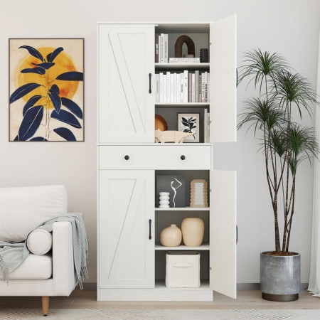 Featuring a spacious desktop, 4 drawers, and 2 compartments with doors, the rolling storage cabinet provides ample space for office supplies, books, decorative items, or other personal items. Built with robust boards that support up to 85 kg, the mobile printer stand can easily hold heavier office equipment and other essentials. Additionally, it is equipped with 5 universal casters (2 with brakes), ensuring effortless movement while staying securely in place when needed. Its modern, stylish design suits both home and office environments, making it the perfect solution as a filing cabinet, printer stand, craft storage, or dresser chest. Bullet Point: Ample Storage for Organized Space: Featuring 4 spacious drawers and 2 bottom compartments with doors, our rolling storage cabinet offers generous storage for books, office supplies, and sundries. The large top surface accommodates printers, scanners, or decorative items with ease. Smooth Mobility with Lockable Stability: The mobile printer stand is equipped with 5 360-degree swivel casters, facilitating easy movement across different floorings. Moreover, 2 of these wheels are lockable, securing the cabinet in place as needed. Robust Wood Construction: Crafted from premium boards, the filing cabinet promises a robust structure capable of supporting up to 85 kg, making it effortlessly accommodate heavier office equipment or ornamental items. Its smooth surface also ensures easy cleaning. Sleek and Modern Design: With a sleek white finish and minimalist design, the 4-drawer dresser chest blends seamlessly into any home or office setting. It is an ideal choice for contemporary spaces in need of practical yet visually appealing storage solutions. Versatile Use: Whether serving as a filing cabinet, printer stand, dresser chest, or craft storage solution, this multifunctional piece adapts effortlessly to various needs. Perfect for home offices, living rooms, bedrooms, and more, it brings practicality and elegance to every space. Specifications: Colour: White Materials: Engineered Board, MDF Overall Dimensions: 73 x 40 x 64.5 cm (L x W x H) Dimensions of Each Drawer: 32 x 35 x 11 cm (L x W x H) Dimensions of Each Compartment: 34 x 38 x 34 cm (L x W x H) Weight Capacity of Countertop: 45 kg Weight Capacity of Each Drawer: 5 kg Weight Capacity of Each Compartment: 10 kg Total Weight Capacity:85 kg Net Weight: 21.5 kg Package Includes: 1 x 4-Drawer Storage Cabinet 1 x Instruction Box Qty:1(May vary by batch)
