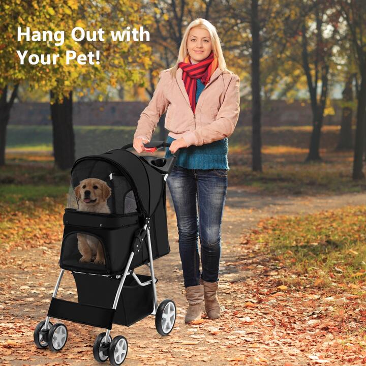 Go out with your little friend! This pet stroller will make it possible to bring your dog or cat to the wonderful outside world! It is necessary to let the pet have contact with the outside world. It will not only make the pet more friendly to people, but also cheer the pet with the new and fun surroundings. 4 mesh windows of the stroller provide a great view and good air circulation for the pet, making the inner environment more comfortable. Large storage space also allows you to take with all you and your pet’s belongings. In addition, universal wheels with brakes make walking more effortless. Bullet Point: Carefree Travel with You Pet: This pet stroller provides an ideal choice for people with smaller or senior pets that can’t last for long walks. There will be a great chance for you and your little friend to go out together and embrace the wonderful outside world. High Safety Guarantee: 4 mesh windows of our pet stroller are designed for good air ventilation and provide a great view for your pet. Smooth zipper on the mesh window makes it easy for you to remove the mesh. Also, the safety belt in the stroller can prevent the pet from falling or running out. Folding Design & Travel Wheels: The pet stroller features a one-hand simple mechanism that can be quickly folded, and will take up minimal space, which allows you to place it in your car or other narrow space in your house. 4 shock-absorbing EVA universal wheels with brakes make it easy to travel with your pet. Ultra-Stable Frame& With Extra Pad: Made of the premium iron frame instead of plastic, plus durable MDF board, this pet stroller features long-lasting service without structural distortion. Besides, This pet stroller also features a thick pad inside the cart for added comfort as well as a upper. Thoughtful Canopy & Multifunctional Storage: The adjustable canopy will help to block rain and sunlight. The top storage bracket is used for holding small items, like water bottles or pet snacks. What’s more, the under storage basket is very large, and you can put your belongings in it and release your hands. Features: 4 mesh windows provide good air ventilation and great view Smooth zipper allows you to remove the mesh if necessary Stable iron frame built for long-lasting service without deformation 15kg large bearing capacity suitable for most small and medium pets One-hand simple mechanism makes it quick to fold the stroller Safety belt can prevent the pet from falling or running out EVA wheels with shock absorption make walking more effortless Extra pad inside the cart for added comfort Adjustable canopy to protect your pet from rain and sun Large storage basket and storage bracket allow you take all necessities with you and release your hands Specifications: Color: Beige/Black/Navy Material: Iron, oxford, plastic, EVA, MDF Product dimensions: 81 cm x 45 cm x 101 cm (L x W x H) Folding dimensions: 45cm x 26 cm x 90 cm (L x W x H) Maximum weight: 15kg Net weight: 5kg Package Includes: 1 x Pet Stroller 1 x User’s Guide Box Qty:1(May vary by batch)