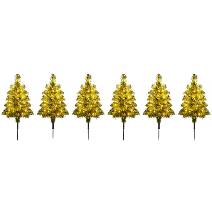 Illuminate Your Outdoor Space with the Enchanting Glow! This stunning pre-lit artificial Christmas tree set that includes 6 beautifully designed mini artificial trees with 45 cm heights, which can be a perfect decoration for your garden, patio, porch, or pathway, adding a touch of holiday charm to your outdoor space. They are powered by a high-efficiency solar panel with a 600 MAH Li-ion battery, reducing the hassle of plug-in power while effectively saving energy. It could charge by sunlight with 8H charging time and auto working at night with 6H working time. Moreover, the trees are adorned with 120 brilliant LED lights that emit a warm and cozy glow, while providing 8 dynamic lighting modes for you to choose from, creating a festive and magical ambiance in your outdoor space. The leaves are crafted of flame-retardant and long-lasting PVC material, while the whole tree features an IP44 waterproof rating, ensuring durability and protection against the elements. Bullet Points: Outdoor Christmas Tree Decoration: This set includes 6 small lighted Christmas trees, each standing at 45 cm tall. The wires between every 2 trees are 50 cm long, with a 300 cm wire length between the solar panel and the trees. Additionally, 6 trees are adorned with 228 verdant branch tips, creating a vivid and natural appearance. Energy-Saving Solar Powered Design: The solar panel is equipped with a 600 MAH large-capacity Li-ion battery, allowing for fast charging and long-lasting. Charges for 8 hours during the day and automatically lights up for 6 hours at night, offering hassle-free illumination. Adjustable Lighting Modes: These mini artificial Xmas tree is pre-strung with 120 warm white LED lights, emitting a soft and cozy glow for a welcoming atmosphere. And there are 8 lighting modes to suit your mood and style preferences. Weatherproof Design for Outdoor Use: This pre-lit holiday tree set is IP44 waterproof, snow-resistant, and frost-resistant, making it safe to use in rainy or snowy weather. It is designed for outdoor Xmas decorations, such as front yards, gardens, pathways, graves, flower beds, patios, etc. Premium Material and Stable Structure: Crafted from selected PVC material, this Christmas tree is flame-resistant and odorless, ensuring safety and longevity. Additionally, the solar panel and trees are reinforced by sturdy ground stakes for enhanced stability. Easy Installation: The light strings are pre-installed on the trees for quick setup. Simply install the solar panel, connect 6 long stakes to the tree, fluff the tree for a greater shape, and enjoy a stunning outdoor Christmas display effortlessly. Features: Comes with 6 mini Xmas trees for a charming outdoor holiday display Features 228 verdant branch tips, add a vivid and natural touch Powered by a solar panel with 600 MAH Li-ion battery, energy-efficient Charges for 8 hours during the day and automatically lights up for 6 hours at night The solar panel is 360° rotatable to adjust the direction for fully absorbing sunlight Pre-strung with warm white LED lights, create a cozy and inviting glowComes with 8 lighting modes (Combination, In waves, Sequential, Slo-glo, Chasing/flash, Slow fade, Twinkle, Steady on) Adopts premium PVC leaves, flame-retardant, odorless, and long-lasting Supported by stable ground stakes, firmly secure the tree for enhanced stability IP44 waterproof, snow and frost resistant, ensure long-time outdoor use Specifications: Colour: Green Material: PVC Tree Height: 45 cm Tree Width: 26 cm Wire Length Between 2 Trees: 50 cm Wire Length Between the Tree and the Solar Panel: 300 cm Number of Branch Tips (Total): 228 Number of LED Lights (Total): 120 Net Weight: 1.5 kg Package Includes: 6 x Mini Christmas Tree 1 x Solar Panel 7 x Ground Stake 1 x User's Manual Box Qty:1(May vary by batch) Is Assembly Required: Yes
