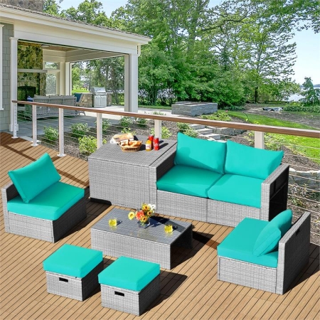 Experience the slow life with our outdoor sectional sofa set! The 6-piece rattan sofa set can be freely rearranged into different combinations according to different spaces, widely used in outdoor patios, porches, backyards, balconies, poolsides, gardens and other places. Our outdoor patio furniture is made of high-quality rattan, which is not easy to break or tear, ensuring many years of use. What's more, we offer super soft seat cushions and back cushions that are comfortable to sit on, so you and the whole family can fully relax and enjoy leisure time! Bullet Point: Durable Rattan & Sturdy Frame: Selected of premium finely woven PE rattan, our patio rattan furniture set features high strength and excellent durability to withstand different weather conditions. Supported by sturdy steel frame, the outdoor sofa set ensures strong load capacity, each sofa holding up to 160kg. Upgraded Comfort with Cushions: Filled with thick and high-density sponge, the soft seat and back cushions bring you extraordinary comfort, reliving the pressure and tiredness of long-term sitting. In addition, the zippered cushion cover is detachable, which is convenient for daily cleaning and maintenance. Flexible Combination & Wide Use: Our 6-piece rattan sofa set can be combined into different configurations according to your preferences. And this classic outdoor conversation set adds a relaxed ambience to your deck, patio, backyard, porch, balcony, poolside area, perfect for entertaining your neighbours or friends. Practical Tempered-glass Tabletop: The modern coffee table will be a functional addition to your living space. The tempered-glass tabletop with smooth surface is easy to clean. Fixed securely by 5 suckers underneath, the tabletop won't move and provides firm surface for placing food, drink or other decorative items. About Shipment & Dimensions: 6 pieces of outdoor furniture are packaged in 3 boxes and may ship and arrive at different times. And you will get 2 Corner Sofas, 2 Armless Sofas, 1 Coffee Table, 1 Ottoman, 5 Seat Cushions, 6 Back Cushions and 1 Clear Instruction. Features: The 6-piece sectional sofa set meets different configurations Made from all-weather PE rattan and sturdy steel frame Ensures great load capacity (Sofa: 160kg, Table: 50kg) Soft cushions with sponge filling offer ultimate comfort Zippered cushion covers are removable for easy cleaning Tempered glass tabletop features hard & smooth surface Elegant addition for the yard, balcony, poolside, deck, porch Includes 4 sofas, 1 ottoman, 1 table, 5 cushions, and 6 pillows Separately packed in 3 boxes, may not arrive on the same day Specifications: Colour: As Picture Shown Material: PE Rattan, Steel, Sponge, Tempered Glass Corner Sofa Size: 76 (L) x 76(W) x 66(H) Armless Sofa Size: 66 (L) x 76(W) x 66(H) Ottoman Size:76 (L) x 76(W) x 43(H) Table Size: 66 (L) x 66(W) x 33(H) Weight Capacity of Each Sofa: 160kg Weight Capacity of Side Table: 50kg Package includes: 2 x Corner Sofa 2 x Armless Sofa 1 x Ottoman 1 x Tempered Glass Table 5 x Seat Cushion 6 x Back Cushion 1 x User Guide Box Qty:3(May vary by batch)