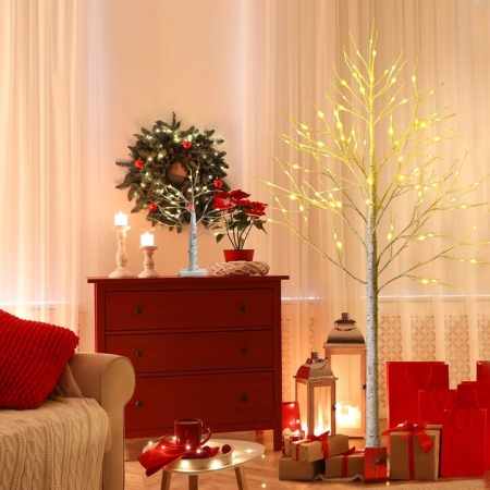 This Christmas set includes a 60cm desktop small tree and a 1.8M large tree, equipped with 24/96 LED lights, which create a warm and romantic atmosphere in your room. These artificial white birch tree with multiple fine-crafted branches has a lifelike birch bark texture. All branches are made of 100% new material, which is odourless, recyclable, and non-toxic. Therefore, you can bend them into any shape and customise your preferred tree shape according to your requirements. Moreover, adding extra ornaments to the tree freely is a good idea according to your inspiration. It can match various party themes and occasions according to the ornaments hung on it. Bullet Point: Artificial Tree with Vivid Texture: The surface of our artificial white birch tree is covered by ultra-realistic birch bark texture, simulating the natural appearance of twig birch sapling. This Christmas set includes a 60cm small desktop tree and a 1.8M large tree, which can bring a romantic atmosphere to your home during the Christmas season. Bendable Tree Branches: This white birch tree consists of multiple branches that can be bent into any shape you want. They are flexible and durable enough, so you don’t worry about the breakage of the branches. You can customise your preferred tree shape freely according to your needs. Bright LED Lights: The desktop tree has 24 warm white LED lights, and the large tree has 96 warm white LED lights, helping you create a romantic and harmonious environment for your room, helping you to create a romantic and harmonious ambient for your room. A well-decorated tree plays an important role in activating the party atmosphere. Therefore, all people who take part in the party can have an unforgettable time. 100% New Material: Made of 100% new material, this artificial white birch tree with a delicate texture and lifelike shape is odourless, recyclable, and non-toxic. All these outstanding features ensure the decoration tree with long service life and outstanding performance. It will work for you for years to come. Free DIY Enjoyment: After shaping the tree shape and enhancing its stability with ground stakes or nails (not included), you can enjoy the endless fun of DIY projects freely. Please remember to prepare ornaments by yourself in advance. Then you can customize your favorite tree according to your inspirations. Features: Flexible and durable branches won’t crack in daily use Realistic birch bark texture has no big difference from a real tree Sturdy branches can hold extra small and medium-sized ornaments Made of smell-free, harmless, and recyclable material Ideal indoor decoration to create a romantic atmosphere Bright LED lights with charming warm white colour Simple assembly for quick setup in minutes Specifications: Colour: White Material: Metal, Plastic Height: 60/ 180 cm Net Weight: 0.25/ 2.2 kg Package Includes: 2 x Artificial Twig Birch Tree Box Qty:1(May vary by batch)