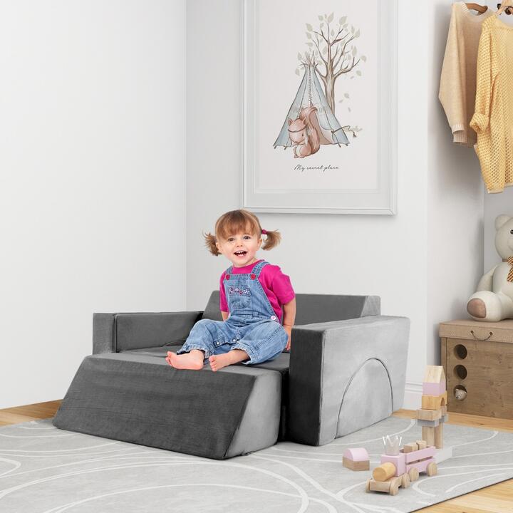 Unleash your child's imagination with this 8-pcs kids modular sofa! The high-resilient sponge inside the kid's modular sofa offers a good cushioning effect for a comfortable seating and jumping experience. The sponge is covered with suede covers which offer a cozy and luxurious touch and ensure maximum comfort for your little one. And the detachable covers are allowed to be washed by the washing machine, providing you with a new-look kids' sofa. In addition, this toddler play sofa has multiple interesting combinations, which let children create their play areas through imagination. Therefore, the indoor kid's couch can bring joy and comfort to your child's playtime while creating a warm interactive space for you and your child to bond. Bullet Point: 8 Pieces Design & Multiple Interesting Combinations: This kids modular sofa includes 2 square cushions, 2 trapezoidal cushions, 2 semicircular cushions and 2 arched cushions. Kids can freely combine the cushions into a recliner, an arch, a castle and many other creative shapes based on their imagination. Premium High-density Sponge: The toddler foam play couch set is filled with supportive and high-density sponge that has high resilience. The excellent cushioning effect allows kids to jump on the play couch without fear of falling, so children can enjoy themselves and release excess energy. Detachable Plush Suede Fabric Cover: The suede covers of the toddler sectional sofa are quite soft and skin-friendly. Moreover, it is easy to make the kid's modular sofa clean again. The covers with smooth zippers are detachable and machine-washable. After washing, you can tumble dry the covers or hang them to dry. Ideal Gift for Imaginative Kids: The toddler modular sofa will be a surprising gift for your child over 12 months old, which can help kids cultivate creativity, stimulate imagination and promote friendship. Also, the whole family can spend quality time together on the toddler modular sofa, creating a warm family interactive paradise. Safe & Considerate Details: The modular play sofa is EN71certified. Even if kids accidentally knock on the kids' play sofa, the soft edges & rounded corners can provide a certain level of protection. Besides, the arch and semicircle cushions can be connected by zippers, which are more stable as armrests on both sides of the seat. Features: 8 pcs kids modular sofa is the best choice to accompany children growing up Create multiple combinations based on children's creativity and imagination Skin-friendly and breathable plush suede material provides a soft touch Comfortable fabric for easy cleaning and maintenance The detachable covers are machine-washable and can tumble dry Supportive sponge has high resilience and a good cushioning effect The soft edges & rounded corners ensure kids' security A zipper to connect the arched cushion to the semicircular cushion An interactive space for promoting parent-child emotional communication Please wait 48 hours until the kid's modular sofa takes full shape A perfect birthday or Christmas gift for kids aged 12 months + Achieved EN71 certification Specifications: Colour: Grey/Pink Material: Synthetic Suede, Sponge Product Dimension: 105 cm x 100 cm x 48 cm (L x W x H) Square Cushion Size: 75 cm x 75 cm x 12 cm (L x W x H) Trapezoidal Cushion Size: 15.5 cm x 75.5 cm x 23.5 cm x 30 cm (Upper W x L x H x Lower W) Arched Cushion Size: 75 cm x 37.5 cm x 12 cm (L x W x H) Semicircular Cushion Size: 49 cm x 25.5 cm x 12 cm (L x W x H) Suitable Age: 12 Months+ Net Weight: 8 kg Package Includes: 2 x Square Cushions 2 x Trapezoidal Cushions 2 x Arched Cushions 2 x Semicircular Cushions 1 x Instruction Box Qty:1(May vary by batch)
