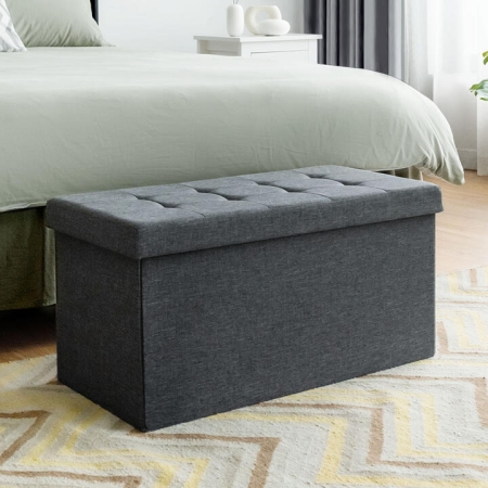 The overall frame is constructed of high-quality MDF, which ensures a high load-bearing capacity without easy deformation. Besides, the soft fabric covering and thick padded seat provide a great sitting experience. Roomy interior storage space with a hanging box can meet the needs of storing clothes, blankets, shoes and other daily necessities. Equipped with detailed instructions, the storage ottoman can be assembled quickly. And it can also be easily folded when not in use which takes little space. Bullet Point: Sturdy and Durable Construction: The overall frame is made of high-quality MDF, which ensures excellent stability without easy deformation or collapse. In addition, with a high load-bearing capacity of up to 160 kg, this storage ottoman can easily seat 1-2 adults. Hidden Storage Space: The spacious internal storage space under the seat can maximize the use of limited space, which is very suitable for storing toys, blankets, books, clothes, etc. It also comes with a small storage bin which can be adjusted and removed to meet your various needs. Comfortable Multifunctional Ottoman: Filled with highly elastic sponge and covered with skin-friendly fabric, the upholstered seat brings an excellent sitting experience. This storage chest can be used as a bench or ottoman to release your fatigue, or as a clutter organizer to keep the space tidy. Elegant and Stylish Appearance: Concise lines, classic color and Chesterfield-style tufts create a unique charm, making this foldable storage ottoman an eye-catcher no matter where it is placed. It’s suitable for living room, bedroom, entryway and other places. Easy to Assemble and Fold: Equipped with an instruction manual with intuitive images, you can quickly set up the upholstered storage ottoman in a short time. When not in use, it can be easily folded with little occupied space, which is an ideal storage solution for small spaces. Features: Large interior storage space for blankets, clothes, shoes and toys Featuring a sturdy MDF frame with high load-bearing capacity Soft and thick foam padding for a comfortable sitting feeling Equipped with a hanging storage bin for small items Can be used as a resting bench or as a storage box Can be folded easily when not in use without taking up much space A perfect complement to the living room, bedroom and entryway Easy to assemble with intuitive instruction manual provided Specifications: Colour: Dark Grey/Light Grey Material: Oxford Fabric + MDF + Sponge Overall Dimension: 80 cm x 40 cm x 40 cm (L x W x H) Inner Dimension: 76cm x 36 cm x 36 cm (L x W x H) Dimension of Hanging Box: 36.5 cm x 20 cm x 10 cm (L x W x H) Weight Capacity: 160 kg Net Weight: 6.5kg Package Includes: 1 x Foldable Storage Bench 1 x Instruction Box Qty:1(May vary by batch)