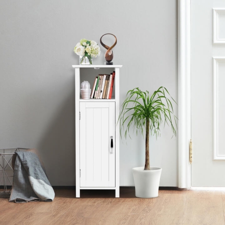 This is our simple and stylish storage cabinet. It is made of MDF, which is waterproof and durable. Premium material and rugged structure give you a perfect cabinet for durability and long life. A large storage space can help you better classify your items. The open top compartment of the cabinet can be used to hold some items for daily use, and your extra items can be placed behind the door. The storage cabinet has height-adjustable shelf to meet your storage needs for items of different heights. This elegant cabinet is an ideal solution for bathrooms, kitchens, living rooms and bedrooms. By the way, featuring anti-tipping devices, this cabinet is safe to use. Bullet Point: High Quality Frame Structure: This storage cabinet is made of environmentally friendly wooden board material with waterproof coating, so it is very suitable for humid environment such as bathrooms. The high quality materials make the overall structure very stable and will not be easily shaken. Besides, the anti-toppling fitting design provides you with a safe guarantee. Save Space Effectively: This storage cabinet occupies a very small area, which can expand the storage space of the home vertically. Moreover, this cabinet provides sufficient storage space while saving space. It is an ideal place to store books, towels, decorations and daily small items, making your room tidy. Adjustable Shelf: Adjustable shelf behind the cabinet door that can be adjusted to the right height for different items. Whether it's a large bottle of shower gel or shampoo, don't worry about the problem you can't put in. It gives you more choices for placing diverse items. Suitable for Many Occasions: The minimalist design is perfectly compatible with any room decoration style, adding an elegant charm to your room. This floor cabinet can be used not only as a storage space for bathrooms and kitchens, but also as a bedside table in the bedroom and a coffee table in the living room. Easy to Assemble & Detailed Explanation: The assembly of this storage cabinet is simple. We will provide all the accessories needed and detailed instructions for easy assembly. Simply follow the instructions and you can quickly assemble it. More, comes with smooth and flat surface this cabinet is also easy to clean Features: Rugged MDF structure ensures long time worry-free using Adjustable shelf behind the door is designed for different items Anti-tipping devices for safe using The large storage space keeps everything in order. High quality hardware materials are durable and not easy to rust. The metal handle is beautiful and practical. Magnetic suction door design, easy to open and close A good storage solution for bathroom, bedroom, living room, kitchen, Easy to assemble with detailed instructions Specifications: Color: White Material: MDF Net weight: 8.5KG Product dimensions: 30 x 30 x 80CM (L x W x H) Weight capacity of each tier: 30KG Package includes: 1 X Storage Cabinet 1 X Instructions Box Qty:1(May vary by batch)