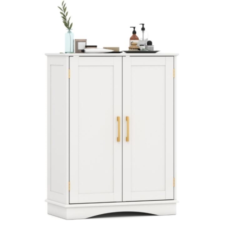 Enhance your home's storage and style with this elegant floor storage cabinet. Featuring a spacious tabletop and a roomy double-door cabinet with adjustable and removable shelves, this cupboard offers customizable storage options. Safety is a priority with included anti-toppling devices for stability, while the exquisite golden handles and hinges add a touch of luxury. Perfectly sized to fit in various rooms, this versatile cabinet provides efficient storage and organization. Bullet Point: Ample Storage Space: This floor storage cabinet features a spacious tabletop for often-used items. Besides, the double-door cabinet offers roomy space to store a wide array of items, from culinary tools and bath linens to books and ornaments, merging convenience with elegance. Customizable Storage: This freestanding cupboard comes with 2 height-adjustable shelves, which are also removable according to your need. Each shelf features 3 heights to fit items of different sizes. Enhanced Safety: With 2 anti-toppling devices included, this floor storage organizer ensures reliable stability and safety. It can be anchored safely to the wall, preventing accidental tipping. Elegantly Crafted Details: Adorned with exquisite golden handles, and hinges, this buffet cabinet combines practical storage options with a luxurious appearance, enhancing the aesthetic of you living space. Universal Applicability: Measuring 60 cm x 30 cm x 80 cm (L x W x H), this storage unit provides efficient storage while occupying small floor space. It is an organizational piece in kitchens, dining rooms, bathrooms, living rooms, and entryways. Specifications: Colour: Black/White Material: MDF + Engineered Wood Overall Dimensions: 60 cm x 30 cm x 80 cm (L x W x H) Interior Dimensions: 56 cm x 26 cm x 71 cm (L x W x H) Weight Capacity of Top: 30 kg Weight Capacity of Each Shelf: 15 kg Net Weight: 12 kg Box QTY: 1 (May vary by batch) Package Includes: 1 x Floor Storage Cabinet 1 x Instruction Manual