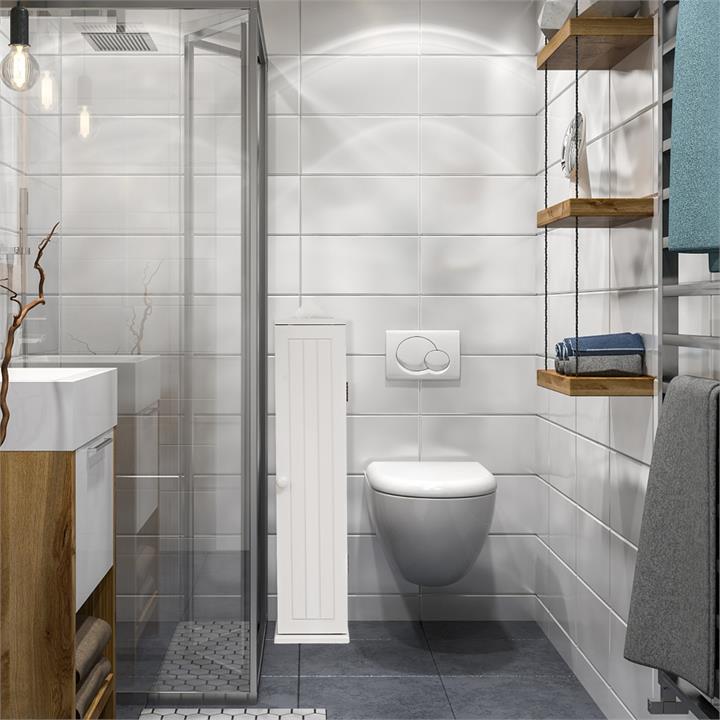 Our tissue cabinet is your ideal tool to store different items, which provides you with sufficient storage space. Top slot and hinged door make it easy to use. Besides, 3 unfixed shelves enable you to freely arrange storage space according to your needs. Space-saving design creates a small floor footprint. Apart from that, made of sturdy MDF, the tissue cabinet is stable and durable. The cabinet with modern and simple appearance is suitable for any room in your house. In addition, smooth surface simplifies the cleaning process. With the help of our detailed instruction, you can assemble it quickly in a few steps. Bullet Point: Ideal Toilet Paper Storage Tool: Our toilet paper cabinet with large capacity is an ideal tool to store excess toilet paper, keeping toilet paper hidden but accessible. A slot on the top makes it convenient for you to use tissue. Besides, we carefully design it with a hinged door, which protects toilet paper from splashing water. Detachable Shelves for Different Usage: Equipped with 3 adjustable shelves, our toilet paper holder enables you to store things at different heights, satisfying your different storage needs. Thus, you can freely store roll paper, toiletries, bathroom cleaners and other items, keeping the room clean and tidy. Space Utilization & Decoration: Our toilet paper holder with compact size creates a small floor footprint, enabling you to place it in any corner according to your needs. Apart from that, with modern style and simple color, it is a great addition to any room in your house. Premium & Durable Material: Made of high-quality MDF material, our toilet cabinet ensures high durability and sturdiness, providing you with a long-term service. Additionally, the toilet paper cabinet painted by white finish is waterproof and can be adapted even in the bathroom. Easy to Assemble & Clean: With the help of our easy-to-understand users’ manual, you can install it quickly and effortlessly. What you need to do is to assemble it step by step according to our detailed instruction. In addition, smooth surface makes it easy to clean, which really saves your time and energy. Features: Ideal tool to store excess toilet paper Large capacity allows you to store different items, such as roll paper, toiletries and bathroom cleaners Slot on the top for easy usage Hinged door to prevent paper towels from splashing water 3 detachable shelves to satisfy your different storage needs Compact size to improve space utilization Suitable for any corner in your house P2 MDF construction keeps it stable and sturdy High-quality materials and white paint make it safe enough to use Easy-to-understand instruction for quick installation Waterproof and smooth surface for easy cleaning Specifications: Color: White Material: MDF Overall dimension: 16cm x 17cm x 69cm (L x W x H) Net weight: 3kg Package Includes: 1 x Tissue Cabinet 1 x Instruction Box Qty:1(May vary by batch) Is Assembly Required: Yes