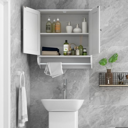 Featuring a versatile layout with an enclosed 2-tier cabinet, an open shelf for daily essentials, and a spacious top surface, it keeps your space organized and free of clutter. The adjustable interior shelf offers 3 height settings and can be removed entirely to accommodate taller items. The wall-mounted design saves valuable floor space, while the refined fluted doors adds a touch of sophistication to bathrooms, kitchens, or hallways. Designed to impress, this wall cabinet is the perfect solution for stylish, space-saving living! Bullet Point: Ample Storage Space: This wall cabinet features a 2-tier enclosed section to keep your essentials neatly stored and out of sight, along with 1 open shelf for daily items you want within easy reach. Plus, a top storage shelf provides extra space, adding even more organization. 3-Level Adjustable Shelf: The adjustable shelf within this floating cabinet can be set at 3 different heights in increments, letting you accommodate items of varying sizes. The shelf is also fully removable, creating a larger space whenever you need it. Modern Elegance: This medicine cabinet showcases timeless fluted doors paired with chic metal handles, bringing a touch of refined charm to your bathroom or any living space. This classic design fits seamlessly with both modern and traditional interiors. Space-saving Wall Cabinet: Thanks to its wall-mounted design, this storage cabinet can be easily added to smaller bathrooms, laundry rooms, kitchens or hallways without sacrificing floor space. Wall-mounting kits are included for easy and stable installation. Refined Details: The rounded corners lend a gentler, safer silhouette to the wall-mounting cabinet while providing an added safety touch. And the magnetic door catch keeps the doors securely closed for tidy, reliable storage every day. Specification: Color: Black/Beige Material: MDF Product Dimensions: 55 cm x 19.5 cm x 61 cm (L x W x H) Open Shelf Dimensions: 52 cm x 18 cm x 17 cm (L x W x H) Interior Shelf Height: 18.5 cm/21 cm Clearance of Adjustable Shelf: 3.2 cm Weight Capacity of Top Board: 15 kg Weight Capacity of Each Shelf: 10 kg Net Weight: 8.5 kg Is Assembly Required: Yes Box Qty: 1(May vary by batch) Package Includes: 1 x Bathroom Wall Cabinet 1 x User Guide