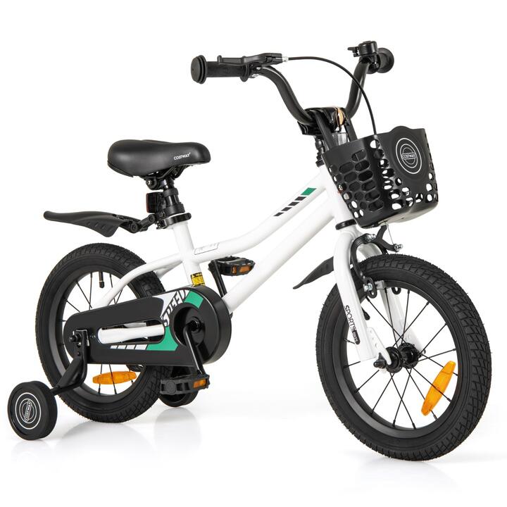 It's time for kids to take the adventure with a cool toddler bike. Our 36 & 40 & 46 cm children training bicycle is equipped with height-adjustable handlebar and saddle, allowing kids to ride with the most comfortable position. Besides, it also has a dual brake system( hand brake and coaster brake) and fully enclosed chain guard for high safety. Plus, the anti-slip pedals and wear-resistant tires enable kids to ride on various flat roads. 2 training wheels add more stability. The front detachable basket is a perfect place for kids to store their toys. Also, coming with 95% pre-assembled design, this toddler bicycle can be installed quickly and effortlessly. Plus, it has passed AS/NZS 1927 and CPN No.6 of 2004. Note: Measure kid's INSEAM and compare with SADDLE HEIGHT to check if the rider can touch the ground. Bullet Point: Adjustable Handlebar and Saddle: This cool kid's bicycle has height-adjustable handlebar and saddle for growing kids to ride. The handlebar can be adjusted from 66.5 cm/71.5 cm /76 cm to 72 cm/77 cm /82 cm, while the seat can be adjusted from 50 cm/55 cm/60 cm to 60 cm/65 cm /70 cm. Dual Brakes and Fully Enclosed Chain: Coming with a hand brake and a coaster brake, this outdoor kid's bike provides toddlers with a safe cycling experience. Besides, the fully enclosed chain guard helps to protect kids from being pinched, allowing for pedaling safety. Anti-slip Tires and Training Wheels: 2 large pneumatic tires are designed with great wear resistance and anti-slip function to ensure steadiness. Plus, the 2 stable training wheels turn it into a triangular frame, helping kids to keep balance. You can also remove the training wheels if needed. Hassle-free 95% Pre-assembled Design: 95% pre-assembled design makes it super easy to assemble. What you need to do is to follow the steps described on the instruction. You will finish assembly in a few minutes. Then, the toddler can ride to enjoy outdoor activities. Comfy and Reliable Toddler Riding Gift: Our kid's bicycle is an ideal gift for toddlers to get tons of fun. The PP covered seat is comfortable for children to sit. The removable basket also meets kids' storage needs. Apart from that, the sturdy carbon steel frame keeps it strong and durable for long-term use. Specifications: Colour: White/Blue/Cream White Material: Carbon Steel, PP, PVC, PP, TPR Overall Dimension: 104 cm x 51 cm x 66.5-72 cm/114.5 cm x 56 cm x 71.5-77 / 127 cm x 56 cm x 76.5-82 cm(L x W x H) Saddle Height: 50-60/55-65/60-70 cm Inseam Size: 40-50/45-55 /50-60 cm Suitable Height: 95-110/105-130/120-150 cm Suitable Age: 3-5/4-7 /4-8Years Old Weight Capacity of Seat: 45 kg Net Weight: 9.5/10.5 /11.5kg Gross Weight: 11.5/13/14 kg Package includes: 1 x Kid's Bike 1 x Instruction Box Qty: 1(May vary by batch)