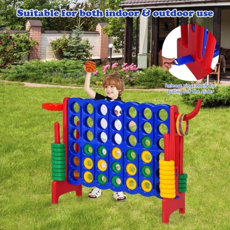While learning how to play jumbo 4-to-score giant game set, the children can develop team spirit and cooperative skills. 104cm height makes it suitable for children and adults. And you can compete with your friends and enjoy the happy time with them. This 4-to-score connect game is made of premium PE and PP materials, which provide a long service life.What are you waiting for? Come and buy this giant 4-to-score game set and play with friends and family! Bullet Point:Giant Puzzle Game: This exciting giant toy is perfect for playing at home, outdoors, at a birthday party or on a barbecue. With it, family game nights become even more exciting. Besides, through this game, children's motor skills, hand-eye coordination and cognitive skills can be greatly improved.Premium Materials and High Durability: The materials used in this jumbo 4-to-score giant game set is carefully selected, so there is no safety risks. Premium PE and PP materials are very durable and can provide you with a long service life. And the edges are very smooth to ensure that the player will not be scratched during the game.Light Weight and Easy to Carry: Due to the use of high quality plastic materials, this four pieces weigh a total of 11kg. The light weight and portable design make this game set very easy to carry. In this way, the playing field will be unrestricted and you can compete with family and friends anywhere.Easy to Assemble and Clean: The jumbo 4-to-score game can easily be set up or taken apart to take to your next party. You can do all the assembly in just a few minutes without using any other tools. In addition, the cleaning process is very easy and simple, occasionally wipe with a wet cloth.The Perfect Holiday Gift: This colorful toy is the perfect gift for children. Whether it's Christmas or birthday, these gifts are always a surprise and will keep them entertained for hours. The rules are very simple and children can learn them quickly. Besides, the two red strips at the bottom can quickly restart the game. Specification:Colour: As the picture shownMaterial: PE + PPProduct Size: 120cm x 42cm x 104cm (L x W x H)Rings Diameter: 14cmNet Weight: 11kg Package includes:1 x Chessboard21 x Yellow Rings21 x Green Rings2 x Supporting Foot2 x Pull Strip1 x Instruction Box Qty:1(May vary by batch)