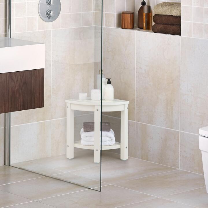 Made of premium HDPE material, this shower stool is waterproof, moisture-proof and anti-fading, which not only can withstand long-term use in bathroom or shower room but also saves your time and money to maintain. The smooth surface is carefully crafted to ensure no burrs. Built with a storage shelf, this corner shower effectively increases the space efficiency of small spaces, suitable for bathroom, shower room, sofa side, bedside, etc. Also, the corner seat is capable for outdoor use, such as balcony, garden, patio and more. The heavy-duty construction can hold weight up to 300 lbs. Made of premium HDPE material, this shower stool is waterproof, mould-proof and anti-fading, which not only can withstand long term use in bathroom or shower room but also saves your time and money to maintain. The smooth surface is carefully crafted to ensure no burrs. Built with a storage shelf, this corner shower effectively increases the space efficiency of small spaces, suitable for bathroom, shower room, sofa side, bedside, etc. Also, the corner seat is capable for outdoor use, such as balcony, garden, patio and more. The heavy-duty construction can hold weight up to 300 lbs. And the non-slip foot pads offer increased stability. Bullet Point: 100% Waterproof HDPE Material: This corner shower stool is made of high-density polyethylene material which is high hardness, waterproof and moisture-proof, ideal to be used in the bathroom or shower room. With exquisite workmanship, the smooth surface has no burrs and is comfortable to touch. Waterproof HDPE Material: This corner shower stool is made of high-density polyethylene material which is high hardness, waterproof and mould-proof, ideal to be used in bathroom or shower room. With exquisite workmanship, the smooth surface has no burrs and is comfortable to touch. Zero Maintenance & Wide Application: The seat is crafted with drainage slots which avoid water accumulation during and after using. This anti-fading HDPE shower bench won't need any hassle maintenance compared to wooden or bamboo shower benches. You can use this bench for both indoor and outdoor use, suitable for bathroom, bedside, sofa side, entryway, etc. Space-Saving Stool with Storage: The 90° design makes this bathroom footrest right for the corner of toilet, bathroom, shower room and more, which is perfect a shaving stool or a corner stool with a storage shelf for small spaces. The smooth and curve top is able to prevent collision and scratching. 150kg Weight Capacity: This corner shower bench features a super heavy-duty construction with a net weight of 4.8 kg. And the weight capacity is as high as 150 kg. The non-slip rubber foot pads can keep the shower bench still when you are sitting or shaving legs on it. Features: Made of anti-fading, waterproof and mould-proof HDPE material Suitable for bathroom, shower room and other indoor or outdoor use Built with drainage slots for quick water drainage and easy maintenance Fits perfectly into the corner and provides extra storage space Features heavy-duty construction and high-weight capacity Equipped with non-slip rubber foot pads for increased stability Easy to assemble with included instructions and accessories Specifications: Colour:White + Brown/White Material: HDPE Product Dimensions:33.02 x 33.02 x 43.18 cm (L x W x H) Net Weight:4.76 kg Package Includes: 1 x Corner Shower Bench 1 x User Guide Box Qty:1(May vary by batch)