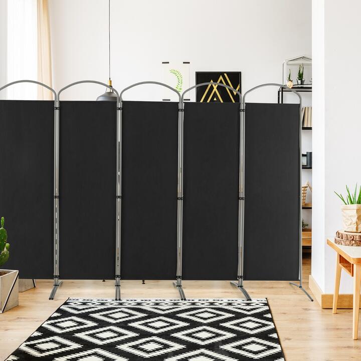 Whether you like to have your own private space or need a backdrop for online meetings, these wide screens can meet your requirements. This room divider has a high-quality metal frame and stable base for good durability. The metal part is treated with powder coating process, which can effectively prevent rust and erosion. In addition, the surface of the screen is made of high-quality woven fiber, which is not only wear-resistant but also allows air circulation. It is worth mentioning that each panel can be used individually or combined together with connecting clasps. Thanks to this design, you can easily store or transport it when you are not using it. The stylish screen will fit most interior spaces! Whether you put it in your living room, bedroom or office, it will be a practical addition! Bullet Point: 6-Panel Room Divider: This foldable room divider consists of 6 panels with a maximum size of 131” x 74” (L x H). You can adjust the width of the screen with different display angles. Whether at home or in the workplace, you can simply unfold the screen and create an undisturbed private space. Durable Materials & Stable Structure: The panel of this room divider is made of high quality polyester, which has good wear resistance and allows air circulation. The frame made of metal is strong enough, while the widened base makes the screen more stable. All metal parts are rust-proofed, making it ideal for long-term use. Free to Separate & Combine: You can use this portable office wall partition as 6 single units, or you can also join them together with the included connecting clasps to form a large one. According to your personal needs, you can flexibly arrange it into various shapes, such as L-shape, W-shape, C-shape, etc. Suitable for Various Scenarios: In addition to being a partition in your living room or bedroom, our screens have a wider range of uses. You can place the room divider next to a window to block the sunlight; you can also use it to create a temporary privacy space for overnight guests. In addition, it is a practical and easy to set up backdrop for remote video conferencing. Easy to Assemble and Store: The package comes with detailed instructions and all necessary accessories, which allows you to assemble the screen without any difficulty. In addition, when you don't need to use the screen, you can easily fold it into a compact size to put it in a corner or store it in a storage room. Features: Simple designed privacy screens suitable for various styles of decorationWoven surface for better breath-ability and wear-resistanceWidened base further increases the stability of the screenSturdy metal construction ensures a long and reliable lasting Foldable 6-panel screen saves you spaceExtra large screen, suitable for home, office, dormitory and other indoor spacesCome with detailed instruction for easy assembly Specifications: Colour: Black/Brown/White/Grey Material: Polyester, Metal Unfold Dimension: 331 x 51 x 188 cm (L x W x H) Folding Dimension: 107 x 15 x 188 cm (L x W x H) Net Weight: 12.5 kg Package Includes: 1 x Room Divider 1 x User Guide Box Qty:1(May vary by batch)